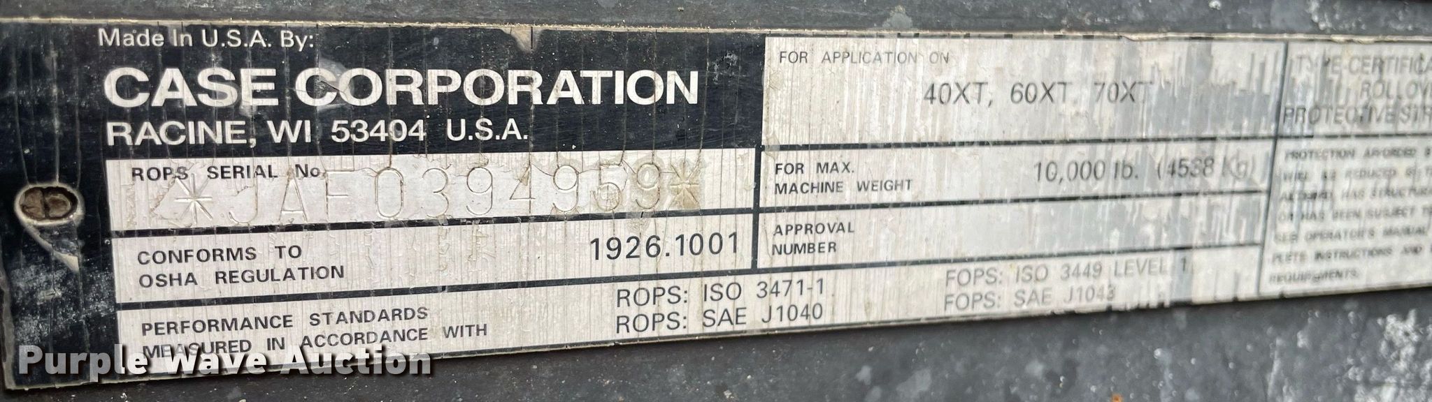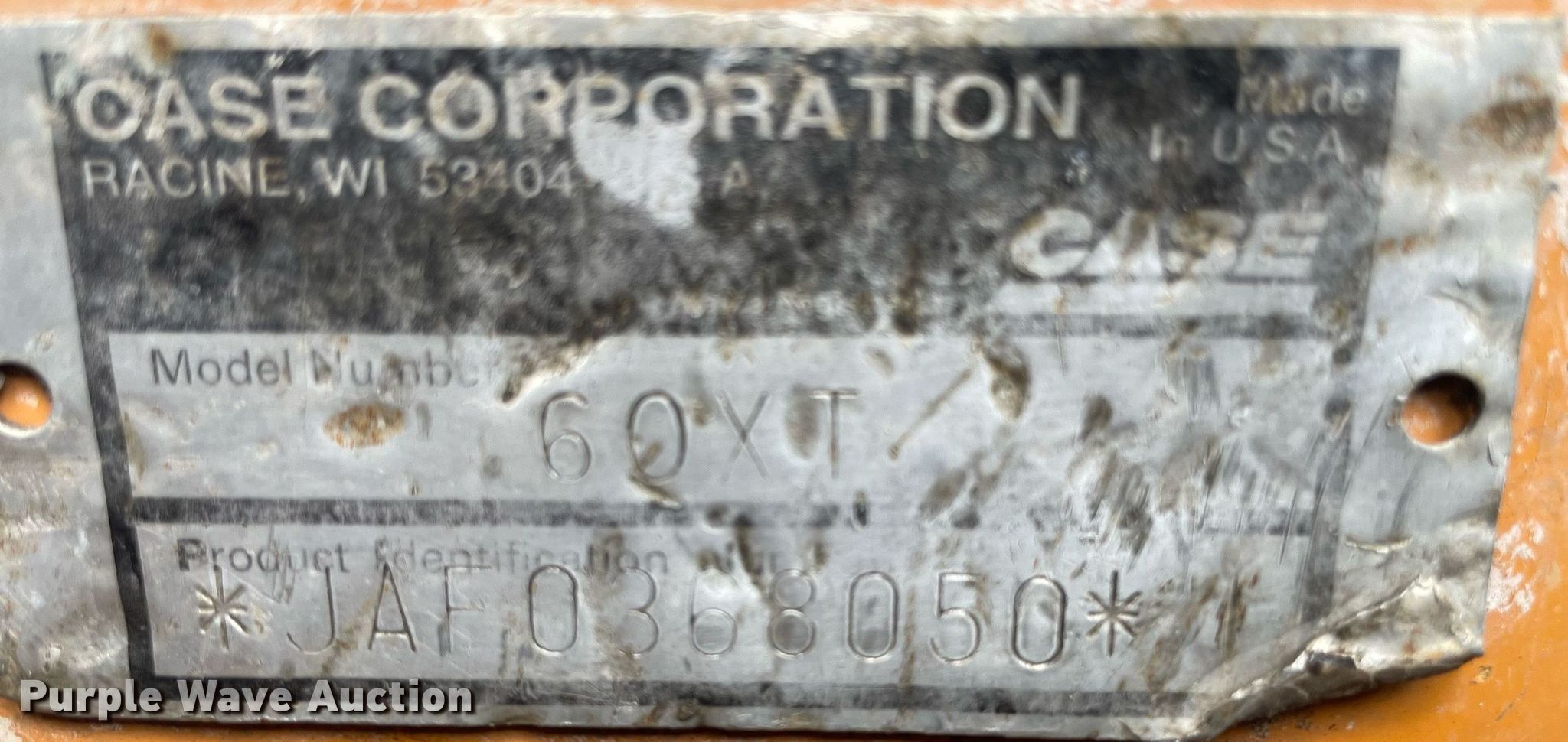 Purple Wave is selling a used Skid Steer Loader in Kansas. This item is a 2003 Case 60XT skid steer loader with the following: Hours: 3,807 on meter, Serial: JAF0368050