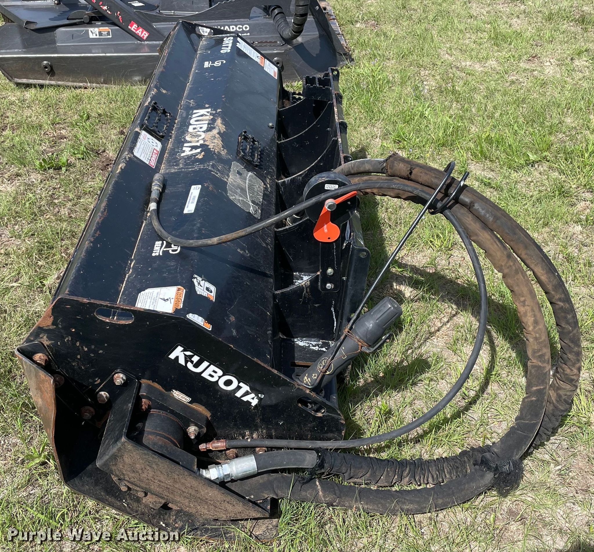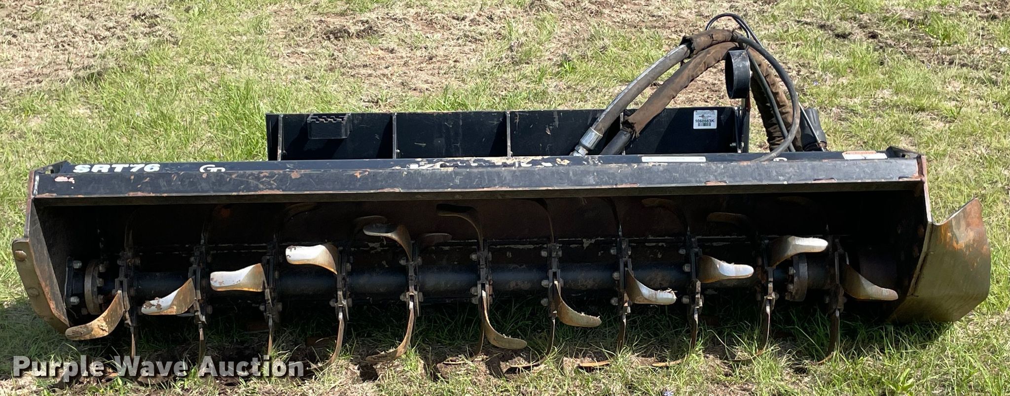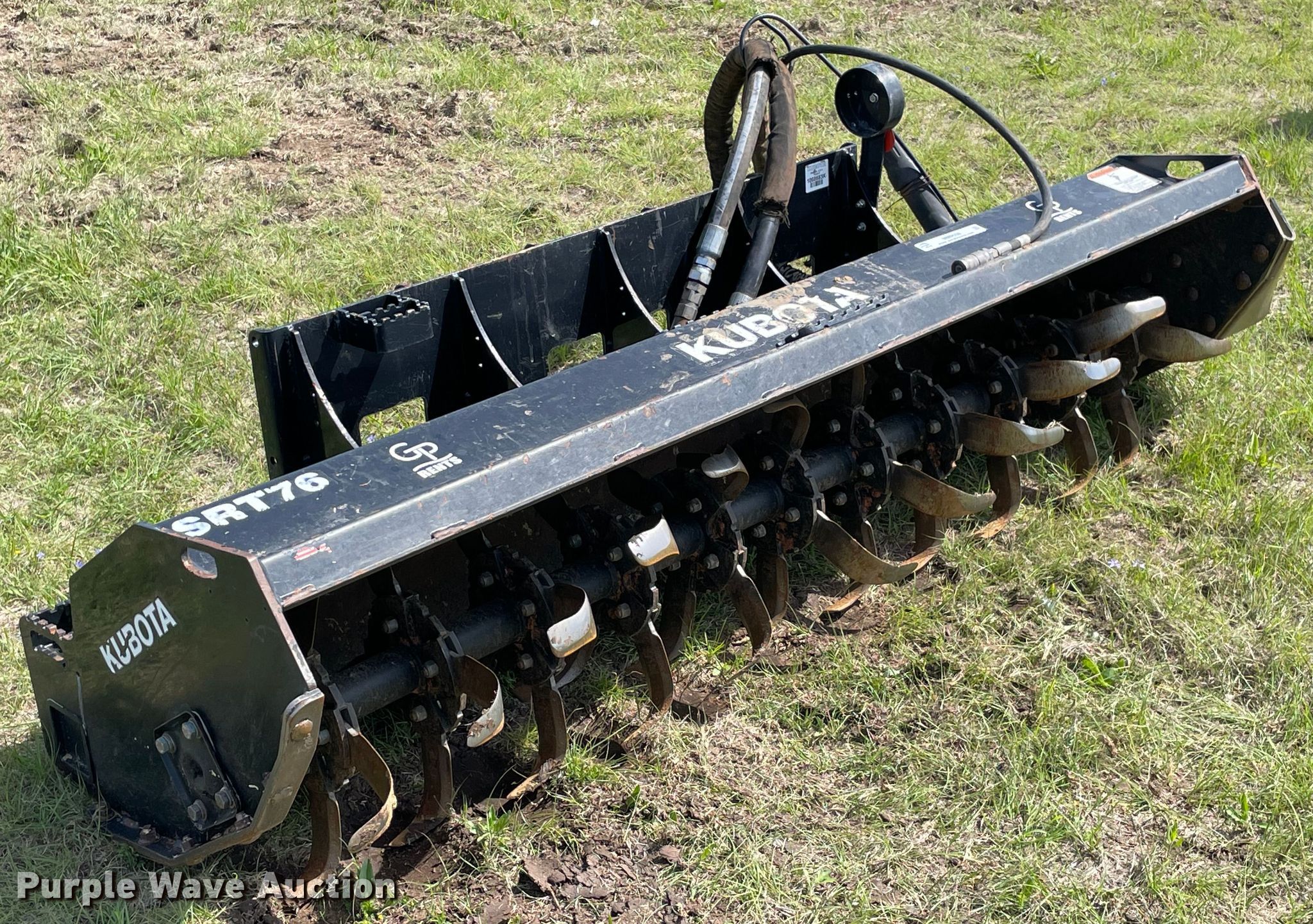 Purple Wave is selling a used Skid Steer Attach. in Oklahoma. This item is a Kubota SRT76 skid steer tiller with the following: Serial: 1068683K, Width: 79"
