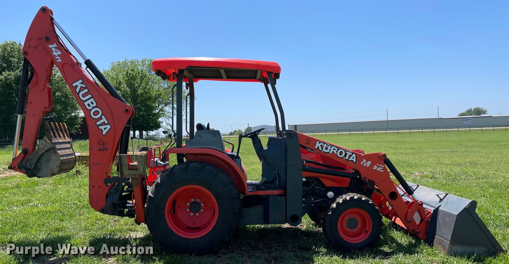 Purple Wave is selling a used Tractor Loader Backhoe in Oklahoma. This item is a Kubota M62 backhoe with the following: Hours: 868 on meter, Serial: KBU141HRKK8F51445