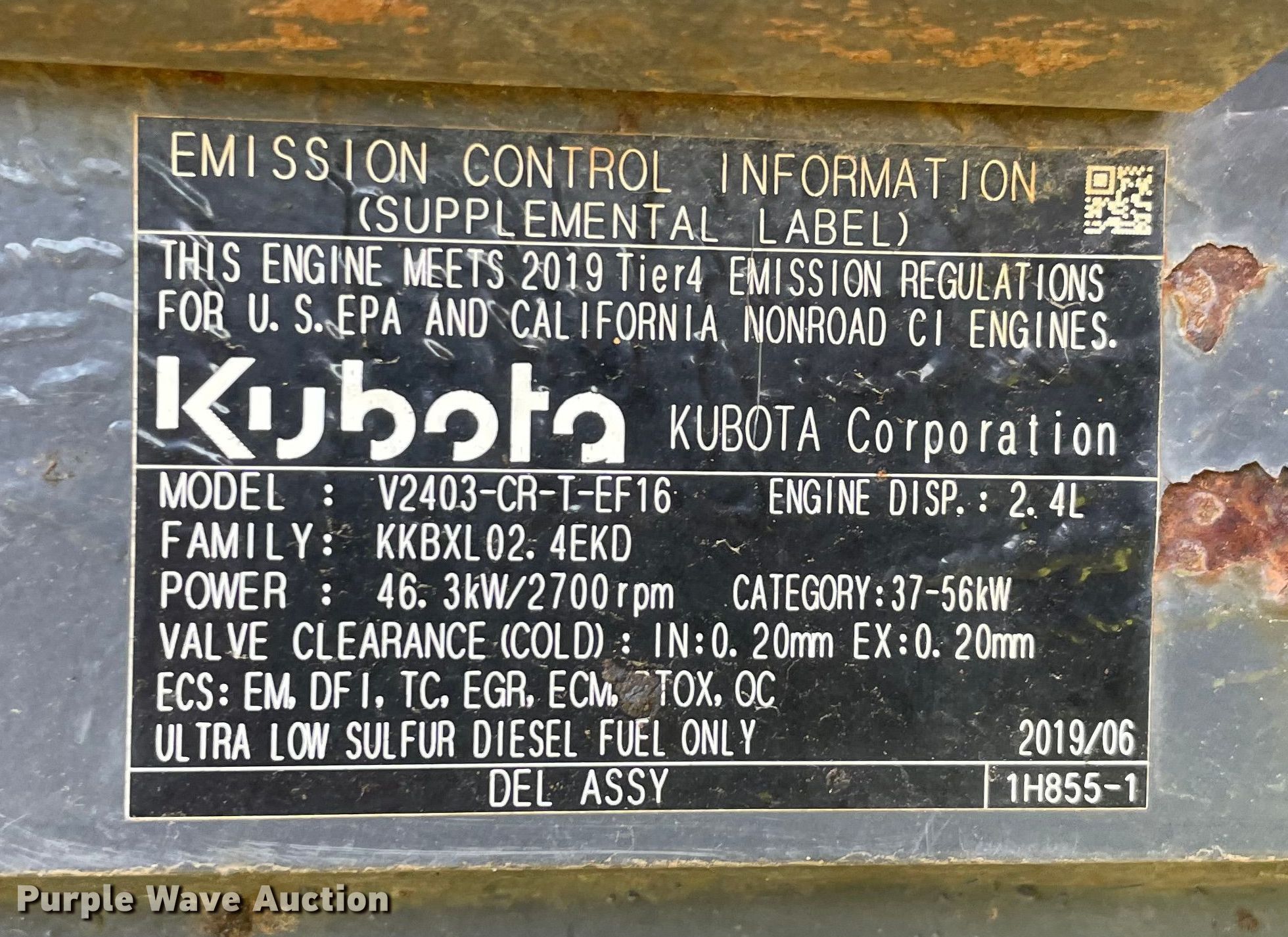 Kubota M62 backhoe. Hours: 868 on meter, Serial: KBU141HRKK8F51445. Engine Kubota V2403-CR-T-EF16, Displacement: 2.4L, Cylinders: 4, Fuel type: Diesel. Transmission Hydrostatic. Chassis Four wheel drive, Differential lock. Operators station OROPS, Backhoe controls: Wobble stick / two stick. Features Loader Bucket Width: 83", Cutting edge: Bolt-on, Backhoe Bucket Width: 23", Cutting edge: Bolt-on, Teeth: 5.. Tires Front: 10-16.5NHS, Rear: 17.5L-24. Okie Rents. 90 County Road. Davis, OK 73030