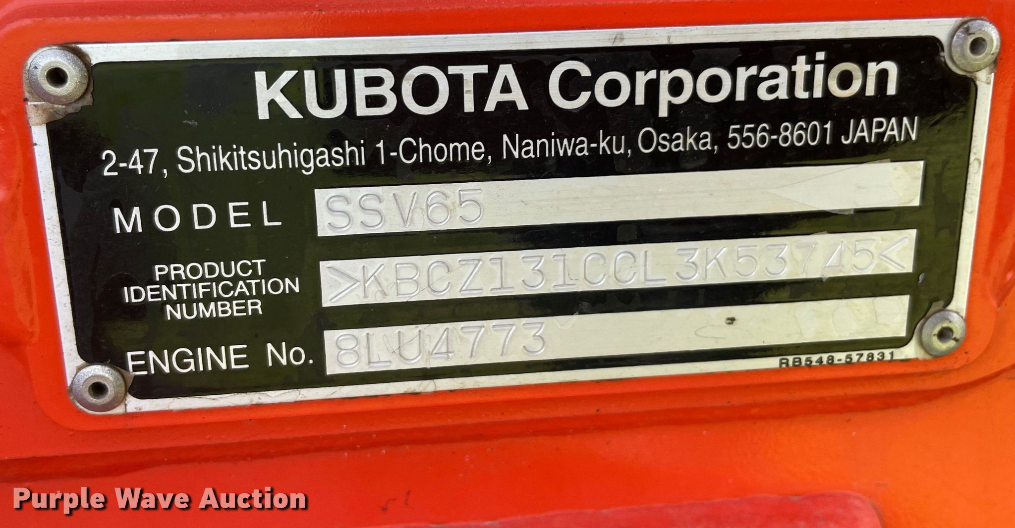Purple Wave is selling a used Skid Steer Loader in Oklahoma. This item is a 2021 Kubota SSV65 skid steer loader with the following: Hours: 501 on meter, Serial: KBCZ131CCL3K53745