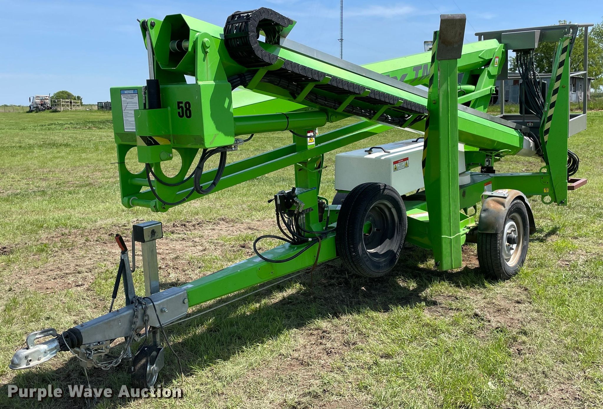 Niftylift TM50TG boom lift. VIN: SLN50HG04LM045858, Serial: 1745858. Engine Honda GX 200, Fuel type: Gas. Features Tow behind, Maximum lift capacity: 440 lbs, Maximum reach length: 28', Maximum lift height: 49', Hydraulic outriggers, Hydraulic extendable jib, Platform: 37" L x 25" W, Controls: Platform, Ground. Tires Tire size: 205/75R16. Transfer of ownership documentation will be a bill of sale. Okie Rents. 90 County Road. Davis, OK 73030