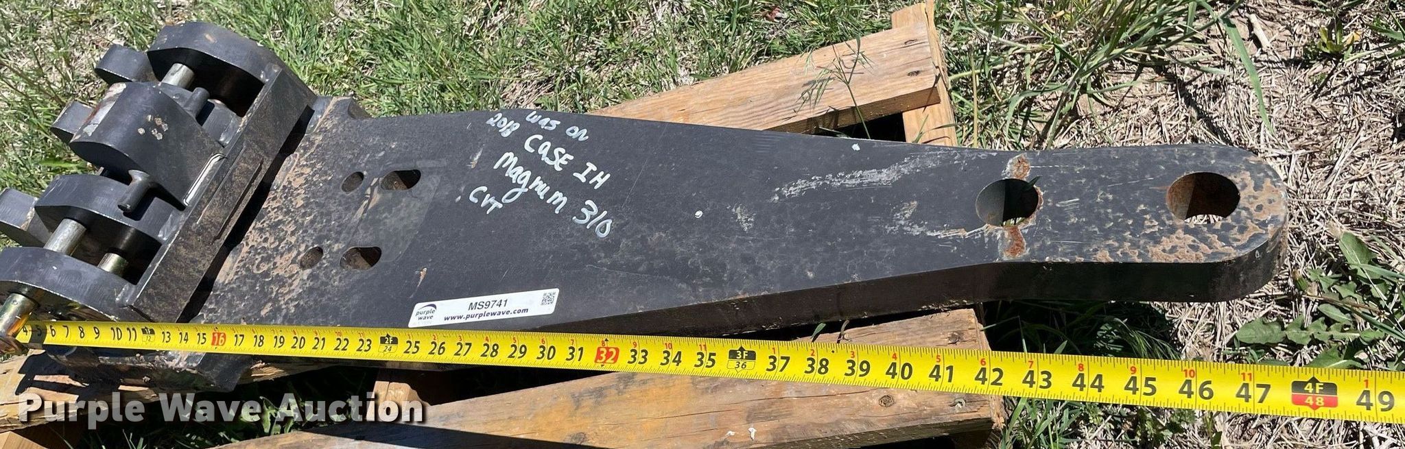 Purple Wave is selling a used Scraper Attach. in Kansas. This item is a Scraper hitch with the following: Serial: 501443, Dimensions: 48" L x 13 1/4" W, Removed from 2018 Case Magnum 310 CVT