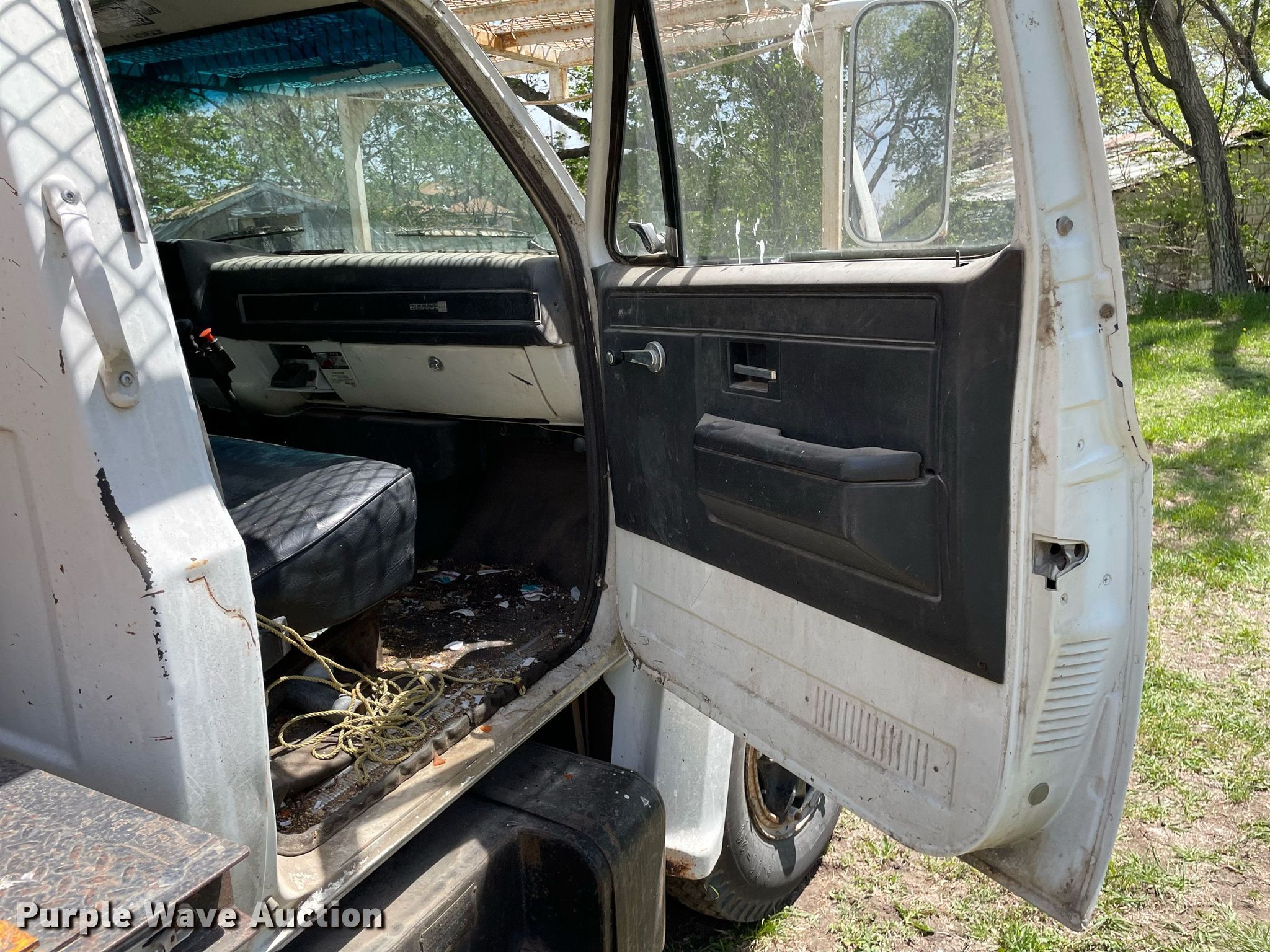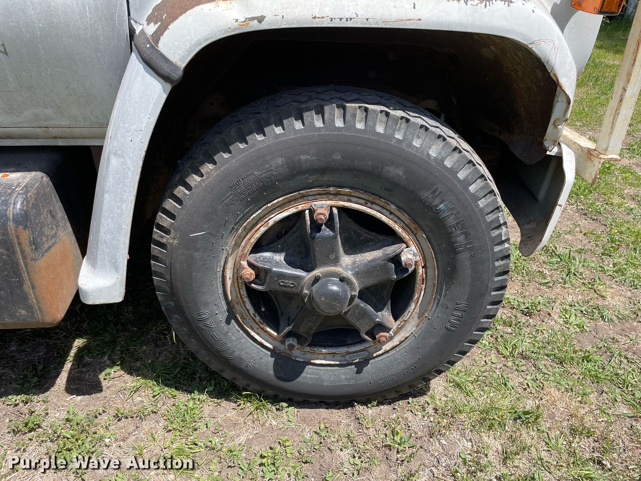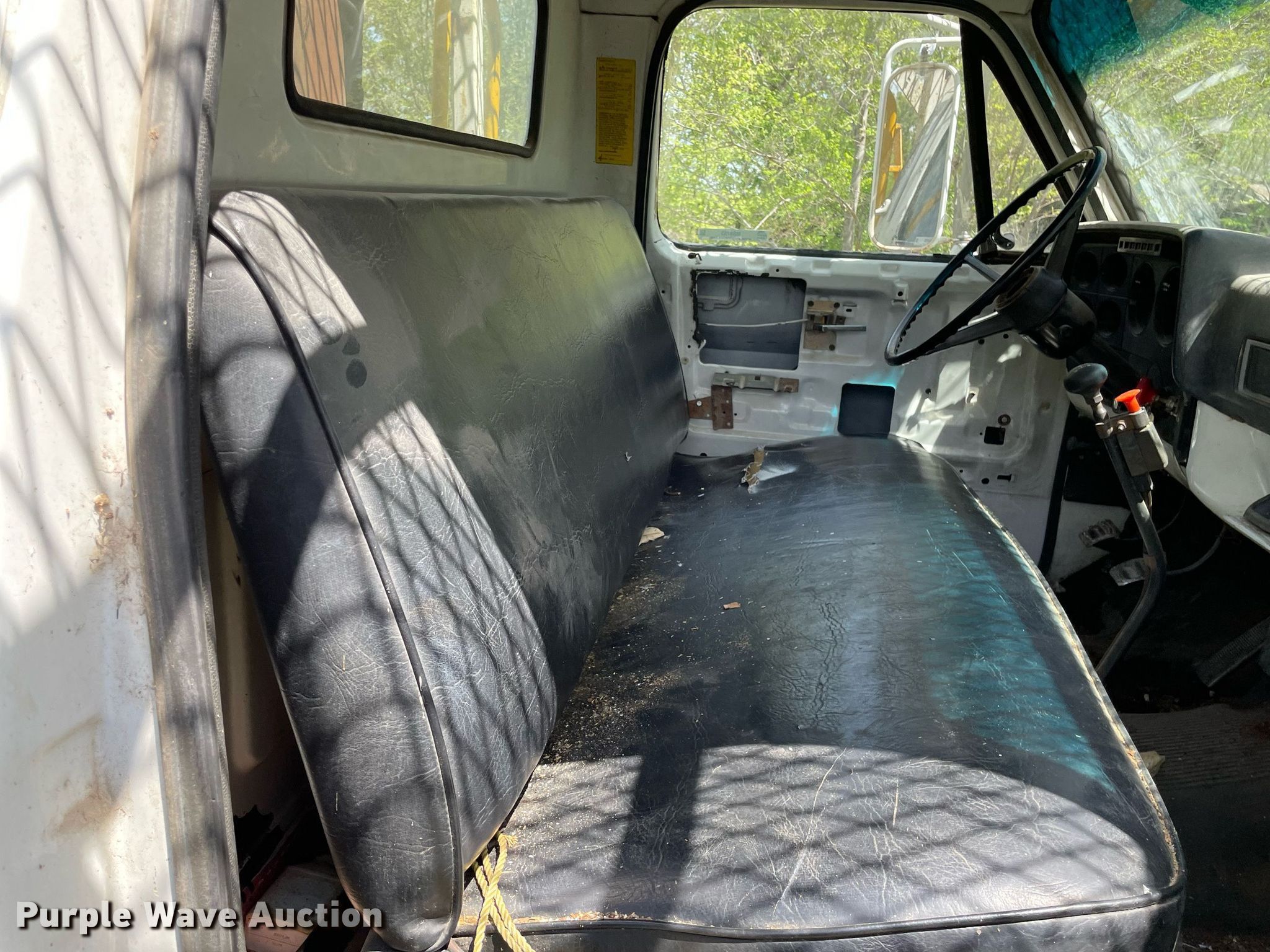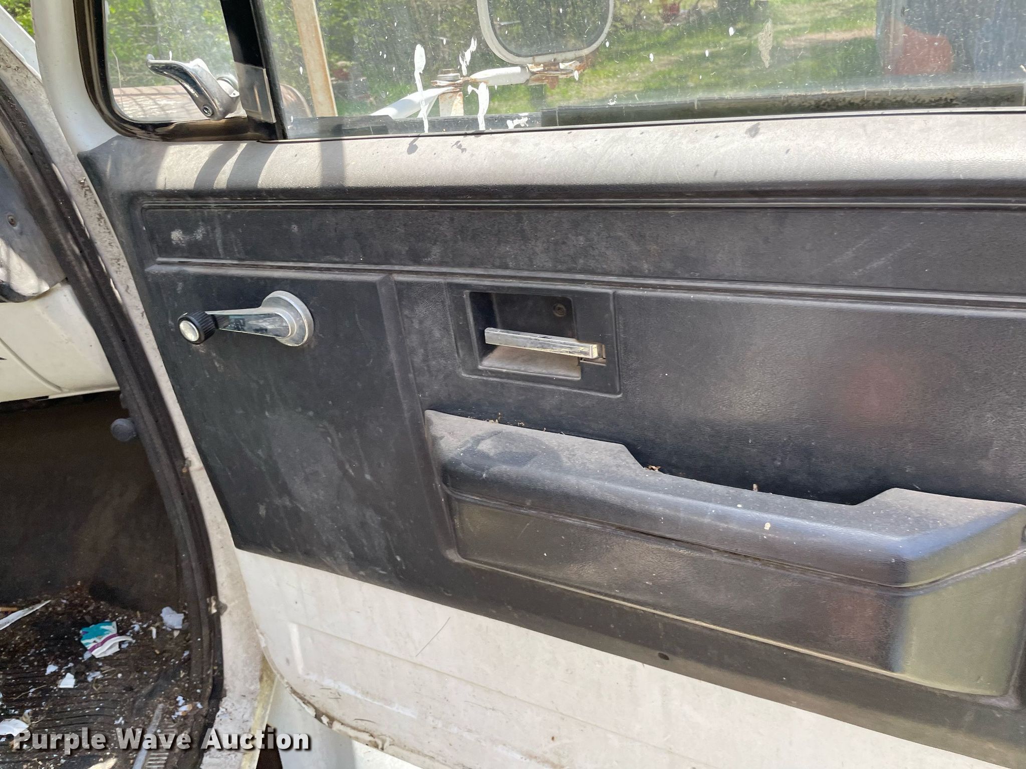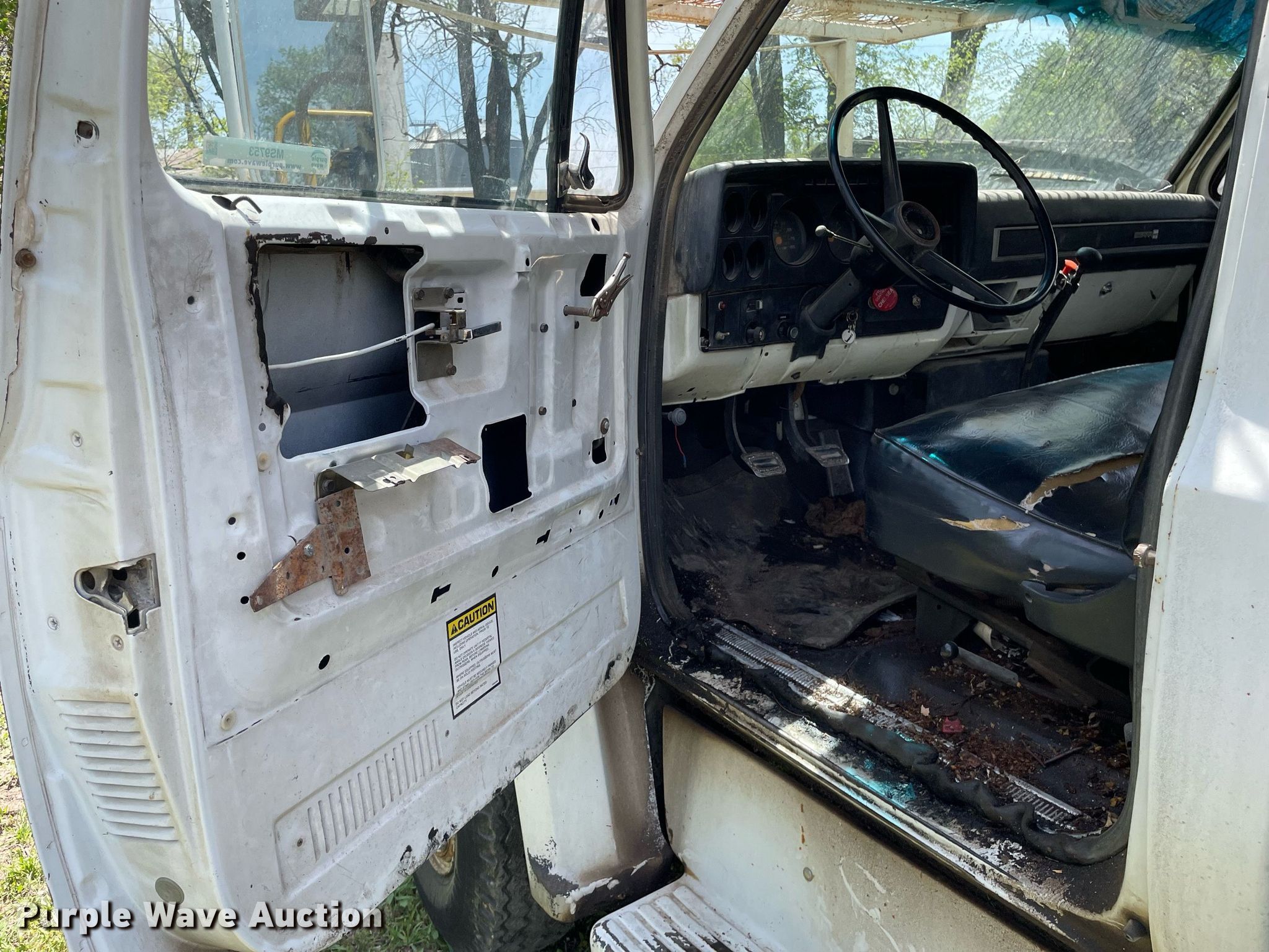 1987 GMC C7000 bucket truck. Miles: 25,889 on odometer, VIN: 1GDL7D1B1HV528009. Engine Displacement: 6.0L, Cylinders: 8, Fuel type: Gas. Transmission Manual, Speed: 5, plus 2. Chassis Suspension: Spring, Brakes: Hydraulic, PTO, GVWR: 28,000 lbs. Interior Heat. Features Bed Abco 197FBD, Serial: 0640587, 16' 4" L, Boom Lift-All LA0C51-1S, Serial: 146105875100C, Boom type: Telescopic, Man basket, Boom controls Ground.. Tires Front: 9.00-20, Rear: 10.00-20. Notes Contents not included , Weak battery, Possible starter issues. Kansas antique title. William Stanley Hall Estate. Abilene, KS 67410