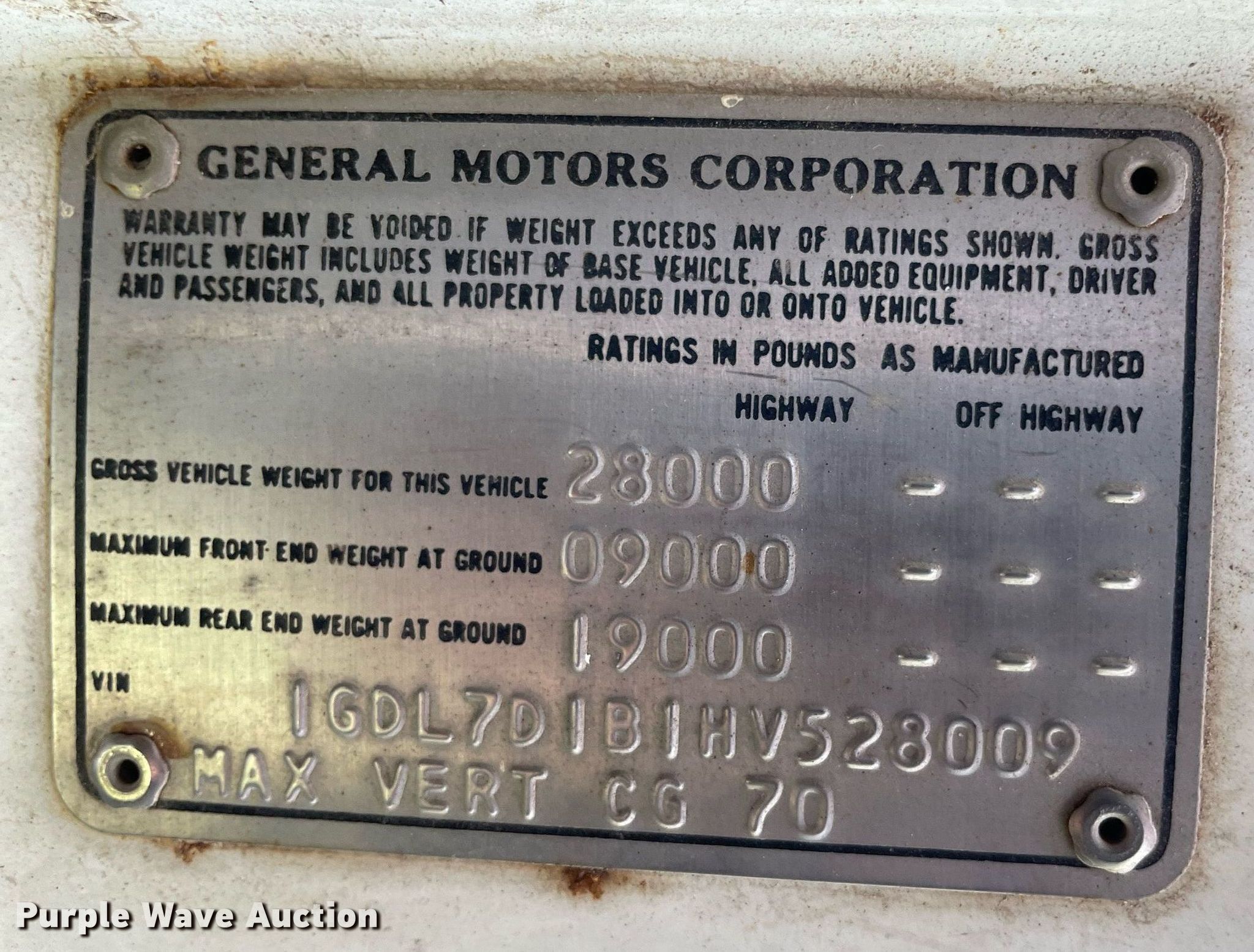 Purple Wave is selling a used Bucket Truck in Kansas. This item is a 1987 GMC C7000 bucket truck with the following: Miles: 25,889 on odometer, VIN: 1GDL7D1B1HV528009
