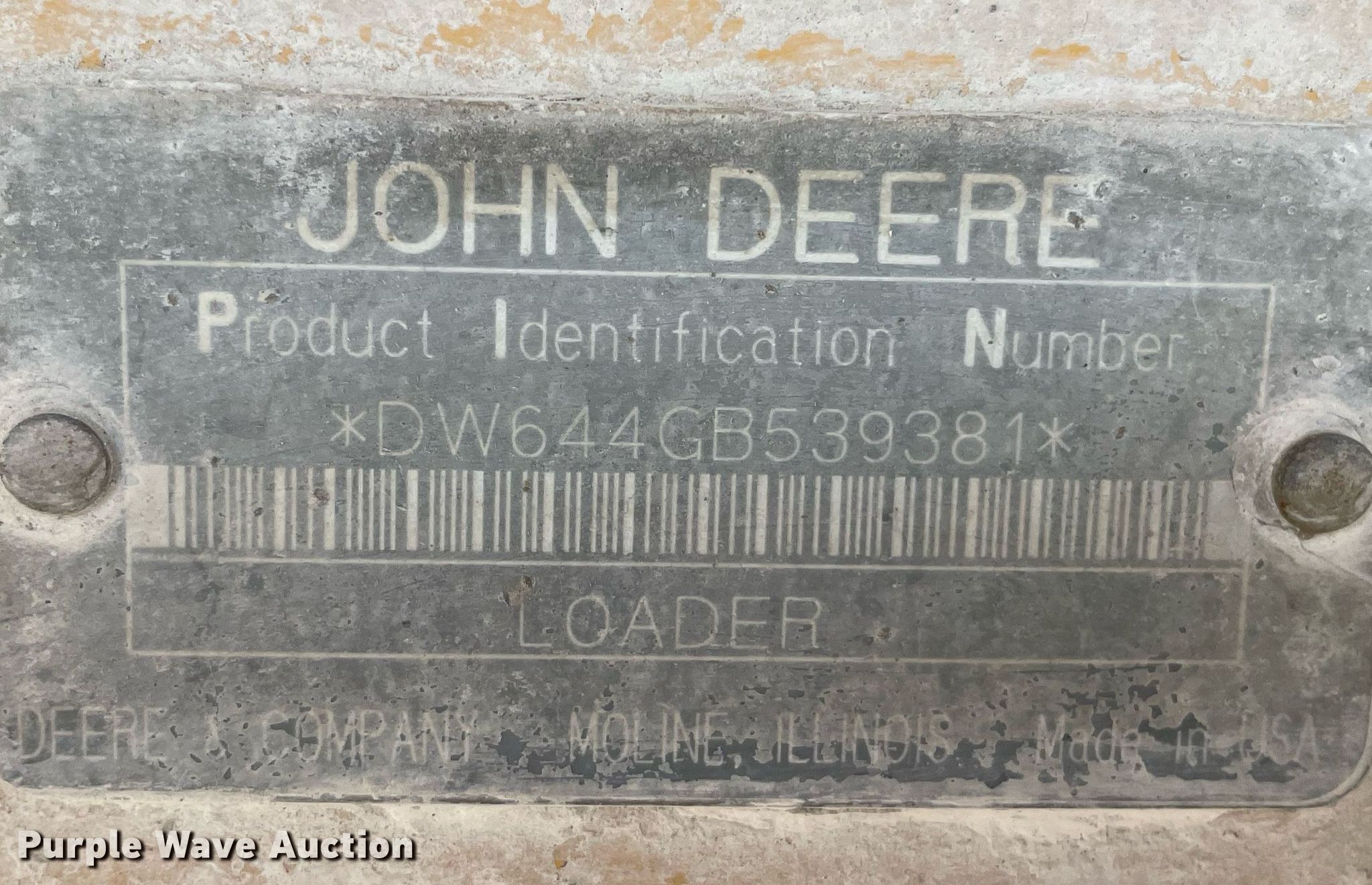 Purple Wave is selling a used Wheel Loader in Kansas. This item is a 1993 John Deere 644G wheel loader with the following: Hours: Unknown, Serial: DW644GB539381