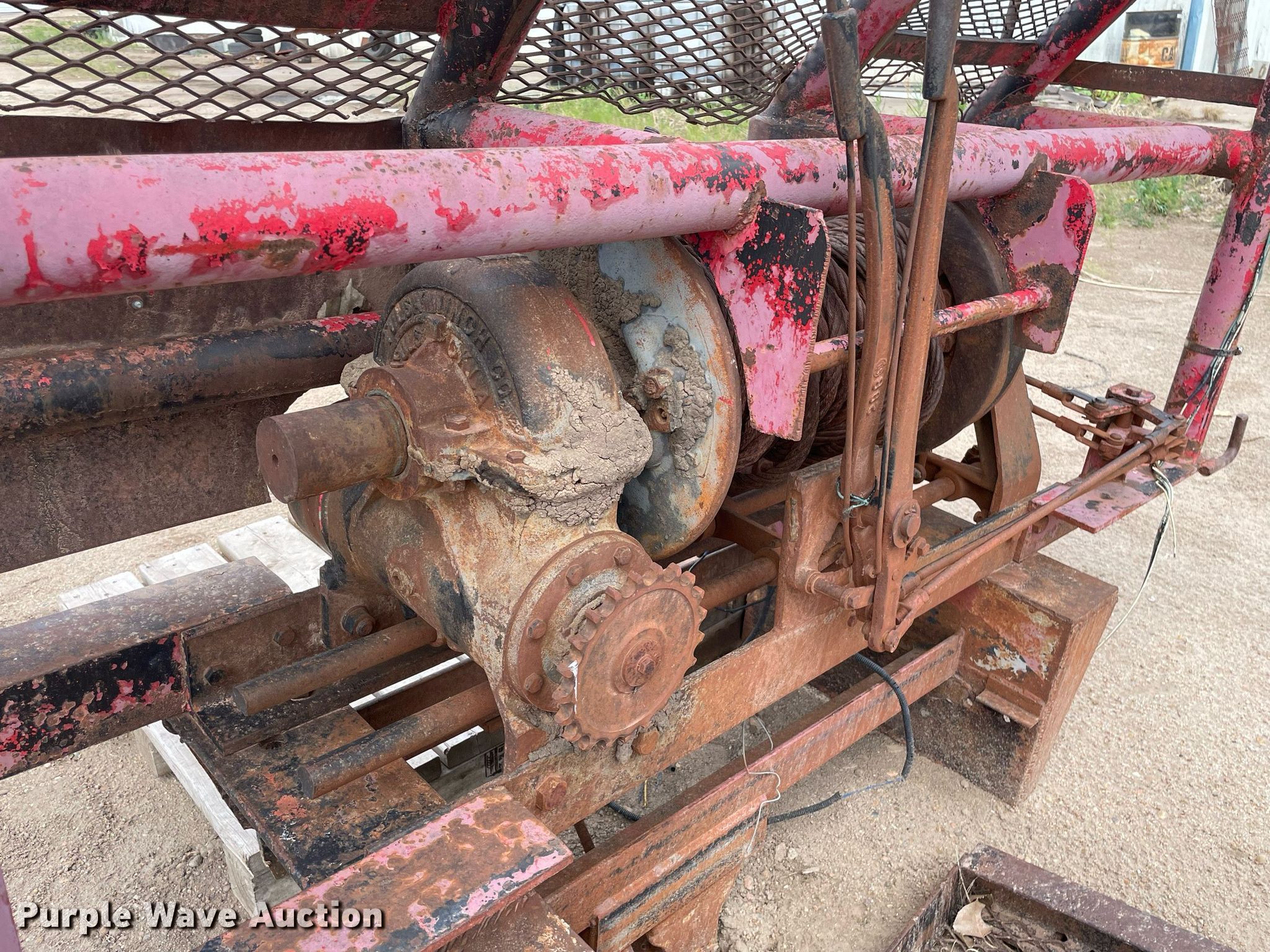 Winch truck bed. Holland fifth wheel plate, Gooseneck hitch, Rolling tailboard, Headache rack Tulsa Winch, Unknown operating condition. Ellinwood, KS 67526