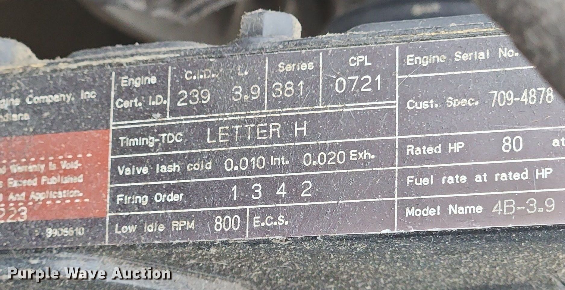1994 Lorain LCD150 crane. Hours: 7,690 on meter, Serial: 99286. Engine Cummins , Displacement: 3.9L, Cylinders: 4, Fuel type: Diesel. Transmission 4F - 3R. Chassis Axles: Single, Brakes: Hydraulic. Operators station Enclosed cab, Crane controls: Stick, Upper interior Load monitor Greer RCI510.. Features Boom Telescopic, Sections: 3, Maximum lift capacity: 30,000 lbs, Maximum lift height: 52', Jib: 15', Stabilizers: 4, Boom controls In-cab, Winches: 1, Crane block Sheaves: 2, Capacity: 30,000 lbs, Crane ball & hook, Manuals, Lift chart. Tires Size: 15-22.5. IUOE Local 513 Training Center. Silex, MO 63377