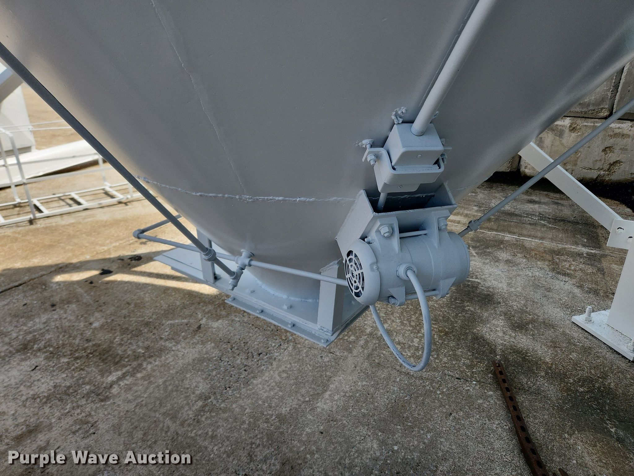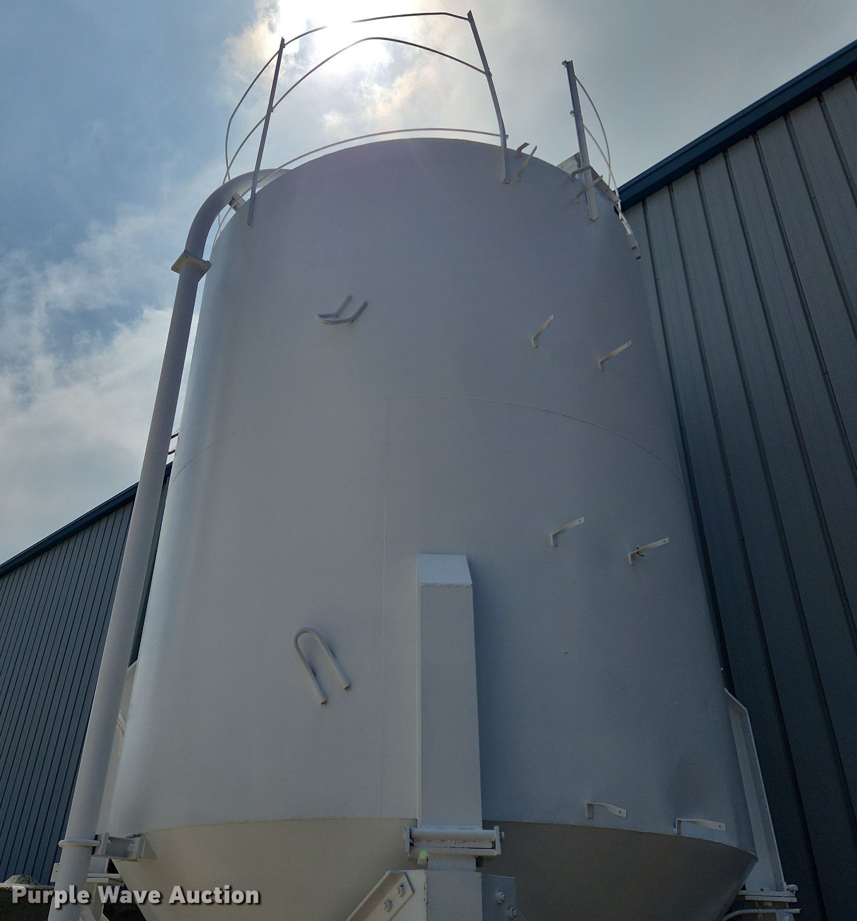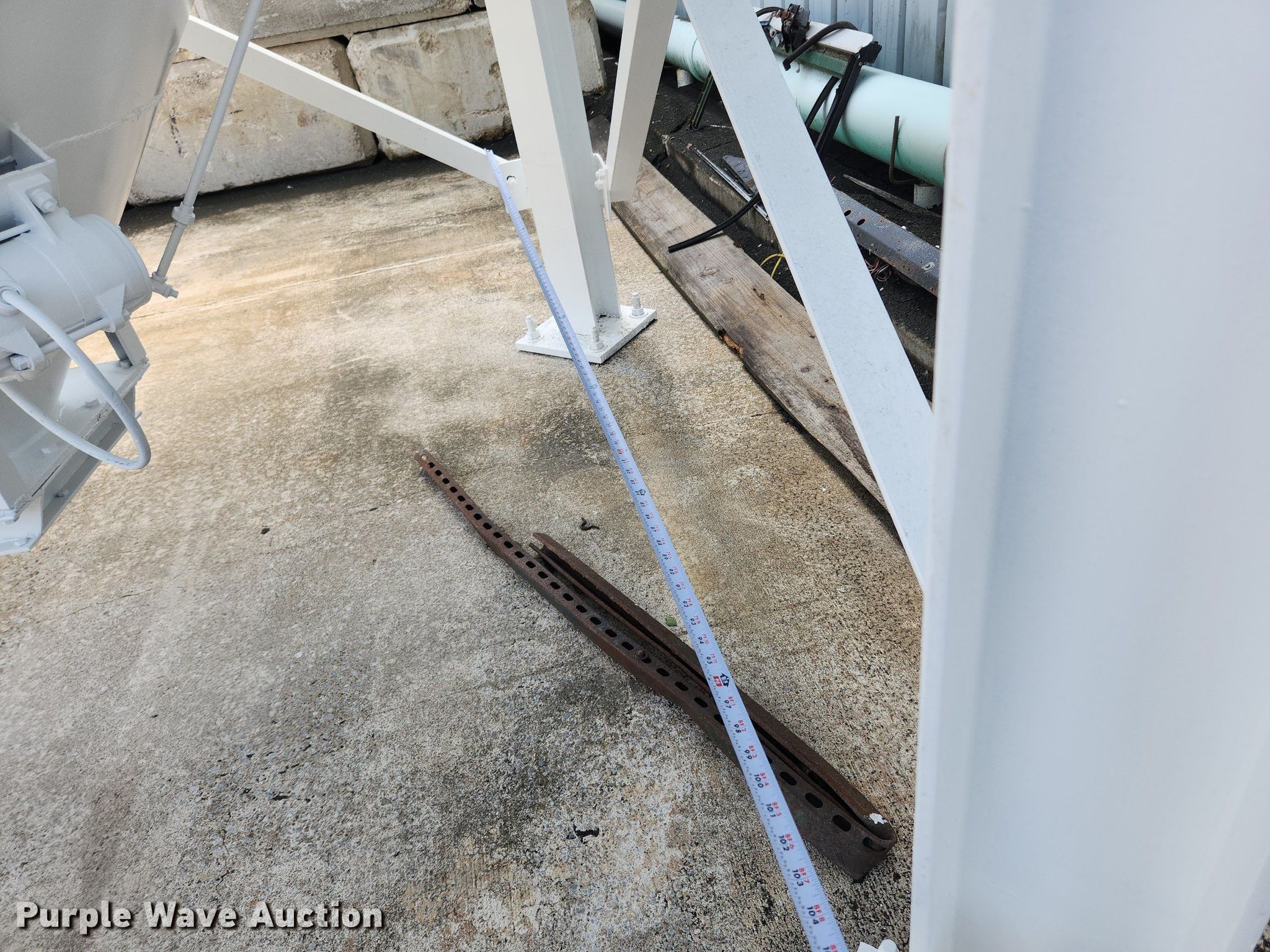 Purple Wave is selling a used Concrete Equip. or Acces. in Missouri. This item is a Cement powder silo with the following: 19'6" H, 12' x 12' crossways, 9' x 8' 10" side to side, 14" x 14" bottom opening, 9' L x 7" diameter auger