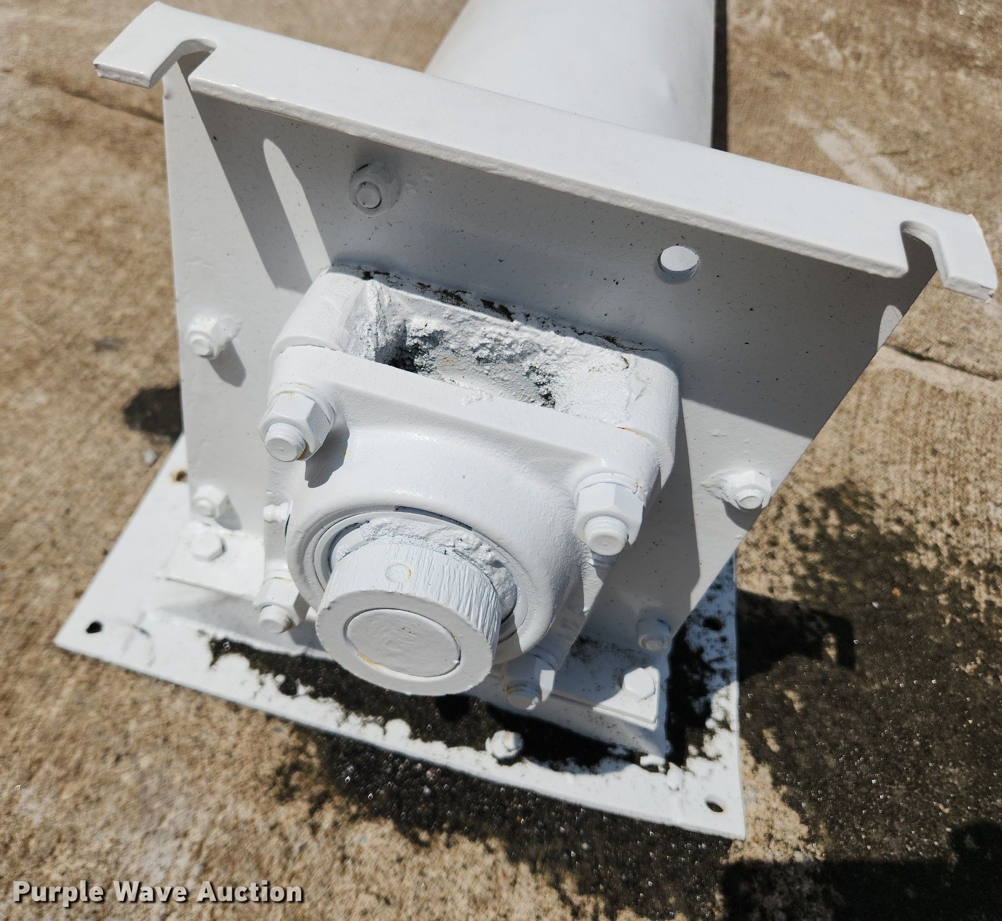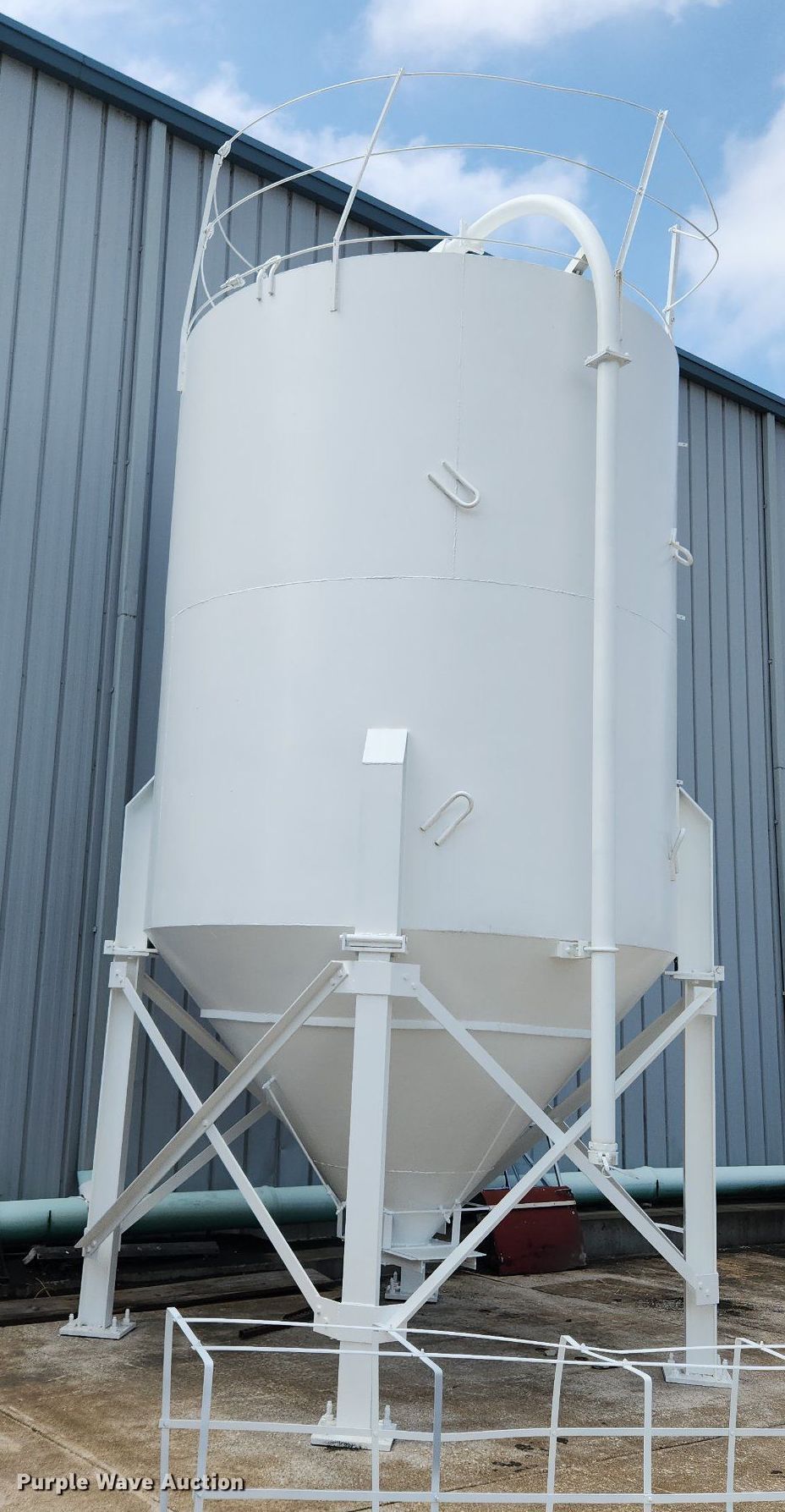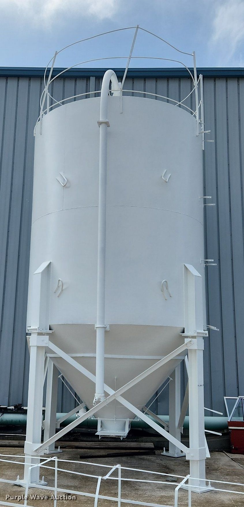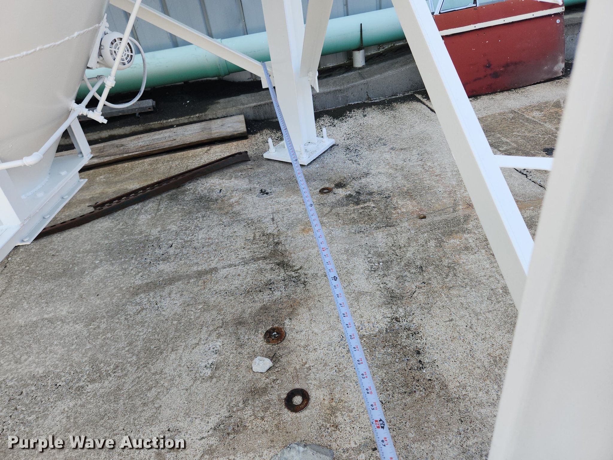 Purple Wave is selling a used Concrete Equip. or Acces. in Missouri. This item is a Cement powder silo with the following: 19'6" H, 12' x 12' crossways, 9' x 8' 10" side to side, 14" x 14" bottom opening, 9' L x 7" diameter auger