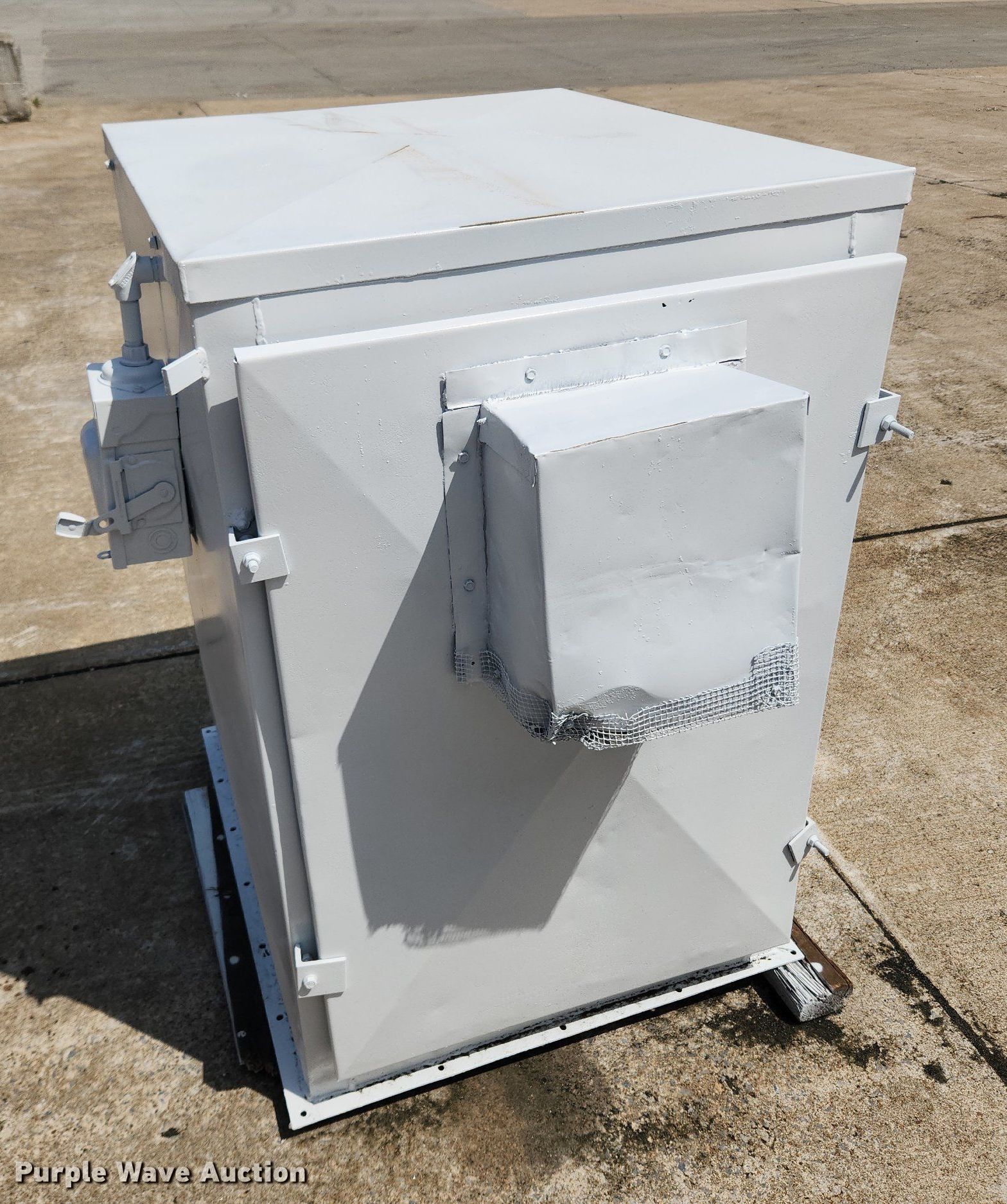Cement powder silo. 19'6" H, 12' x 12' crossways , 9' x 8' 10" side to side, 14" x 14" bottom opening, 9' L x 7" diameter auger. Kuesel Excavating Company. O'Fallon, MO 63366