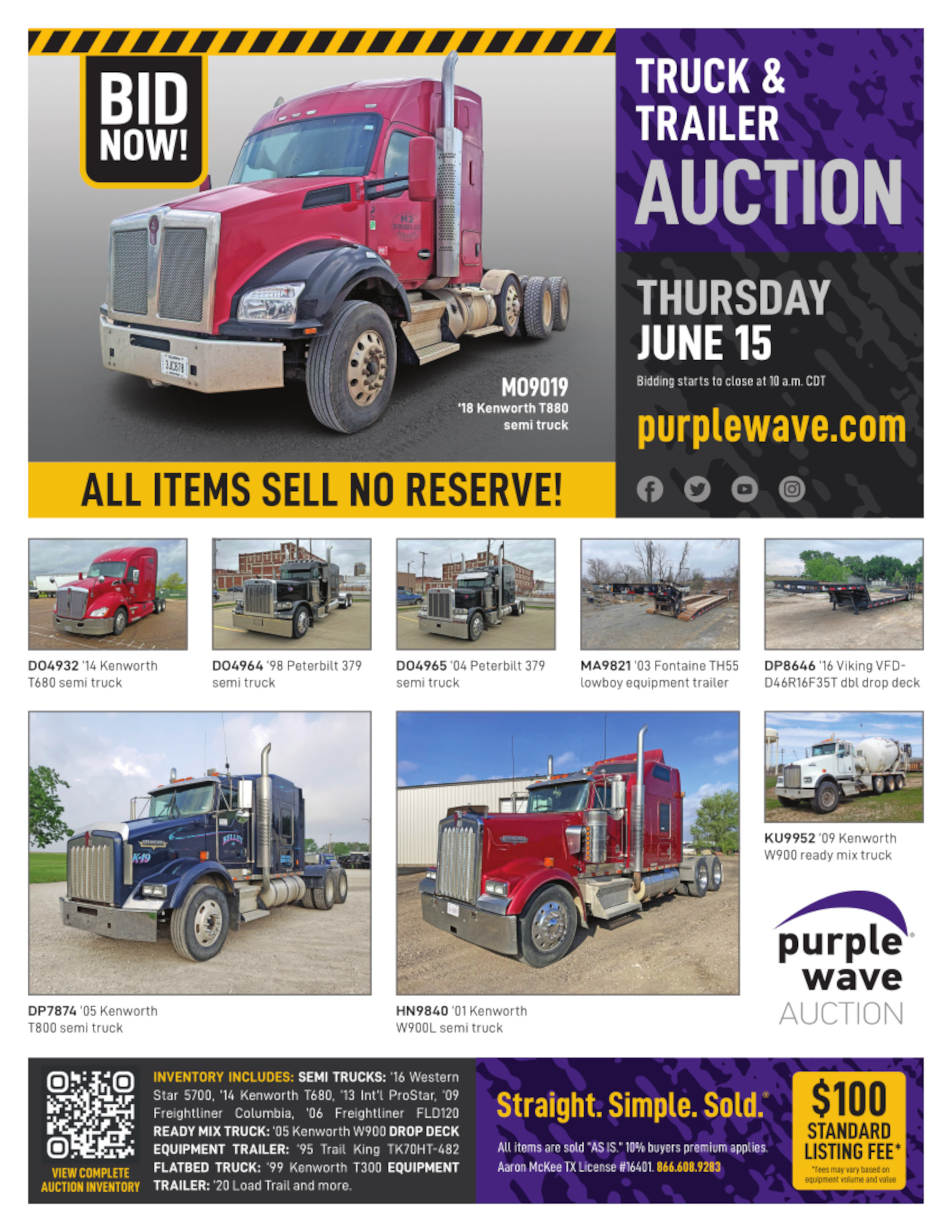 This auction is conducted by Purple Wave, Inc., whose home office is 825 Levee Drive, Manhattan, Kansas. Aaron McKee, Texas auctioneer license # 16401, operates Purple Wave, Inc. Complaints against us may be directed to the Texas Department of Licensing and Regulation, P.O. Box 12157, Austin, Texas 78711, (512) 463-6599. For additional required information, see the attached document.