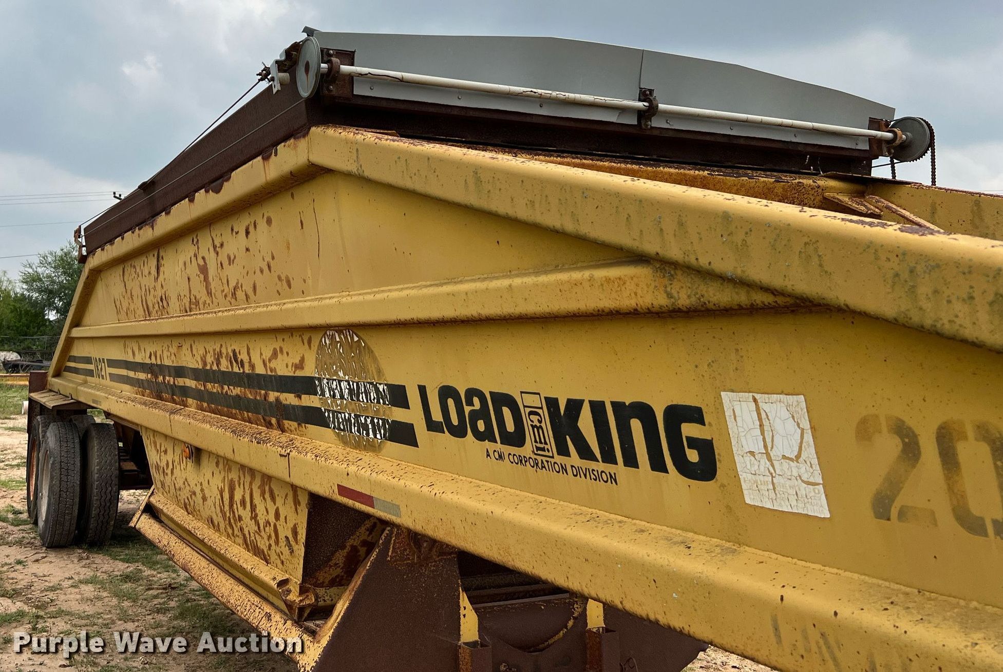 1988 Load King 1827-3-2 bottom dump trailer. VIN: 1L4B40235J1015738. Dimensions Overall: 41' 8" L x 96" W, Sideboard height: 8". Features Body type: Steel, Clamshell gate: Air operated, Trailer controls, Rear push block, Roll tarp. Chassis Landing gear: Dual, Suspension: Spring, Brakes: Air, Axles: Tandem, GVWR: 67,120 lbs, GAWR: 19,040 lbs. Tires Steel wheels, Size: 11R24.5. Texas title. Title distribution may be delayed up to 14 days from verification of funds. Stricker Drilling DBA D&D Services. 2772 Business 35 East. Pearsall, TX 78061