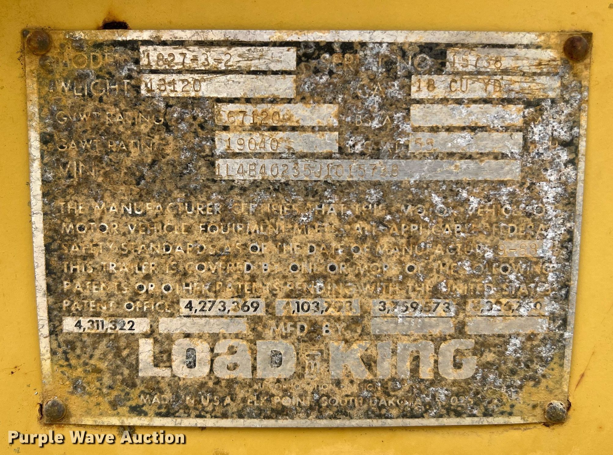 Purple Wave is selling a used Bottom Dump Trailer in Texas. This item is a 1988 Load King 1827-3-2 bottom dump trailer with the following: VIN: 1L4B40235J1015738