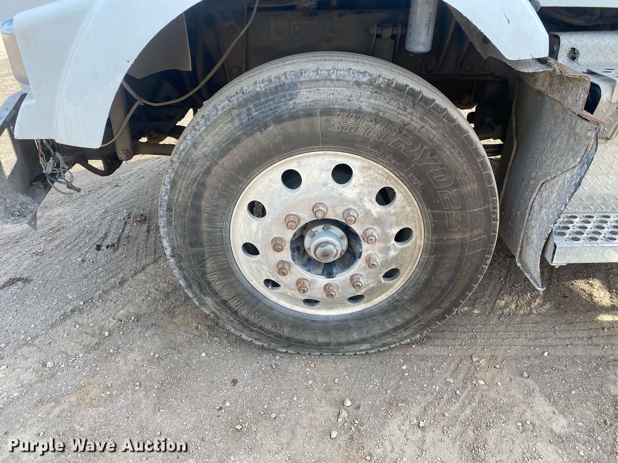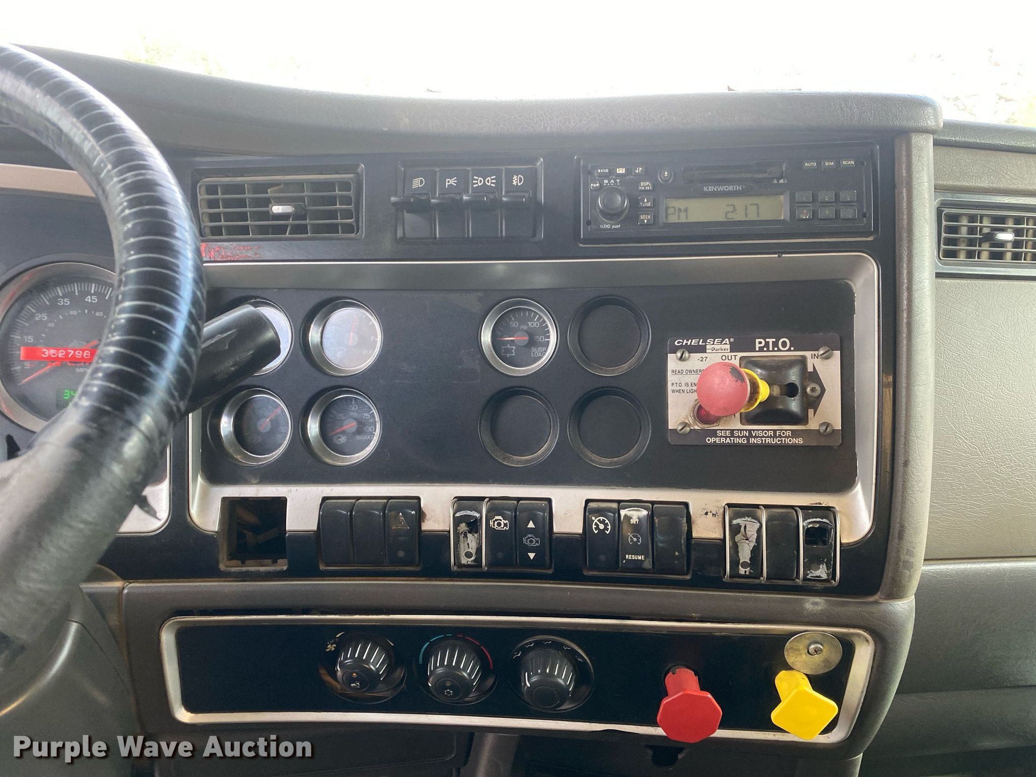 2006 Kenworth T800 semi truck. Miles: 344,994 on odometer, Hours: 38,362 on meter, VIN: 1XKDDU9X56R130670, Unit #: 3-110. Engine Caterpillar C13, Displacement: 12.0L, Cylinders: 6, Fuel type: Diesel, Engine brake. Transmission Manual. Chassis Axles: Tandem, Suspension: Air, Brakes: Air, PTO, Wet kit. Interior AC, Heat, Power locks, Cruise control. Features Fifth wheel type: Air operated, Sliding, Fuel tank: Single. Tires Size: 11R22.5. Oklahoma title. Title distribution may be delayed up to 14 days from verification of funds. Becco Contractors Inc. 13737 East 46th Street North. Tulsa, OK 74116