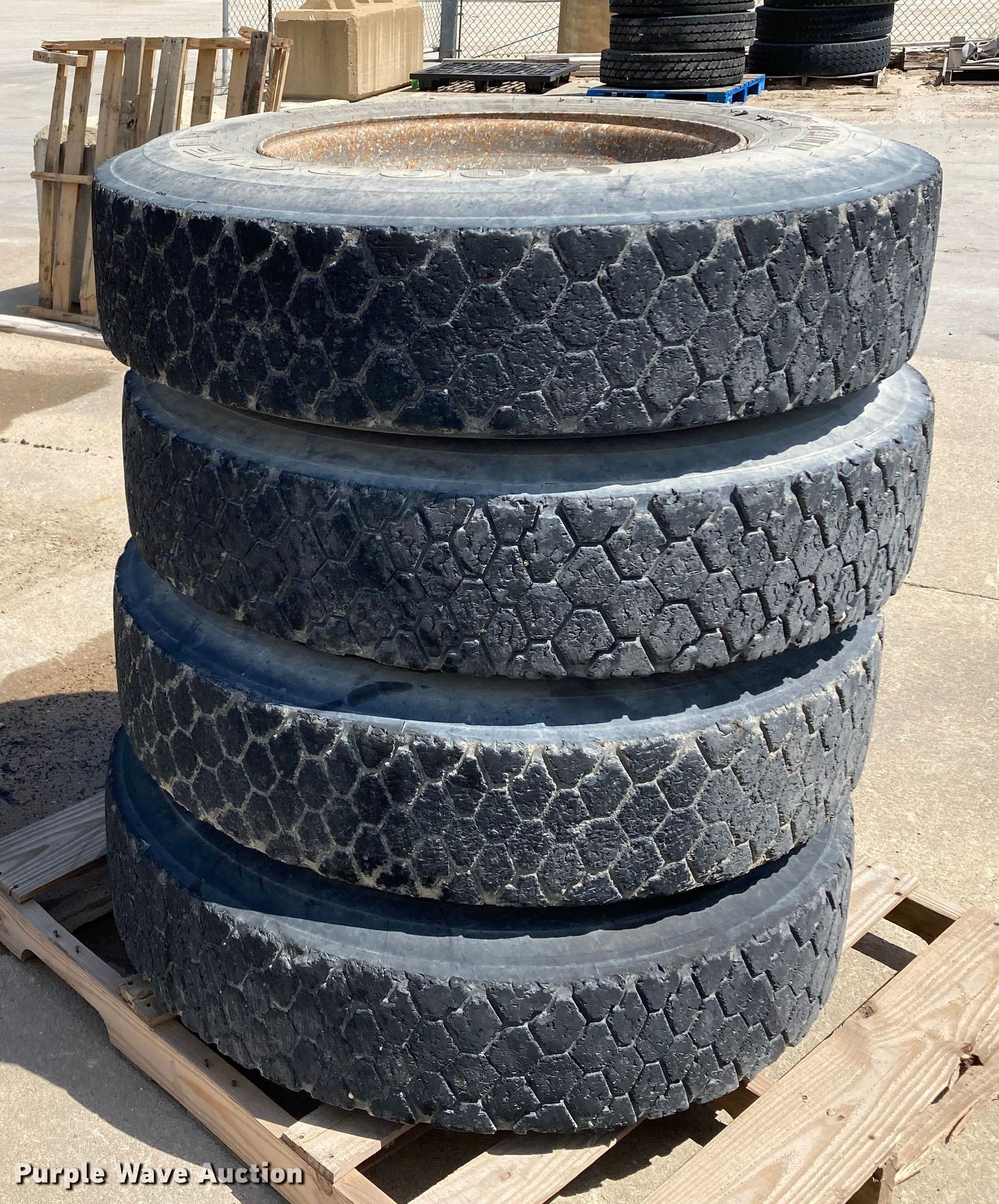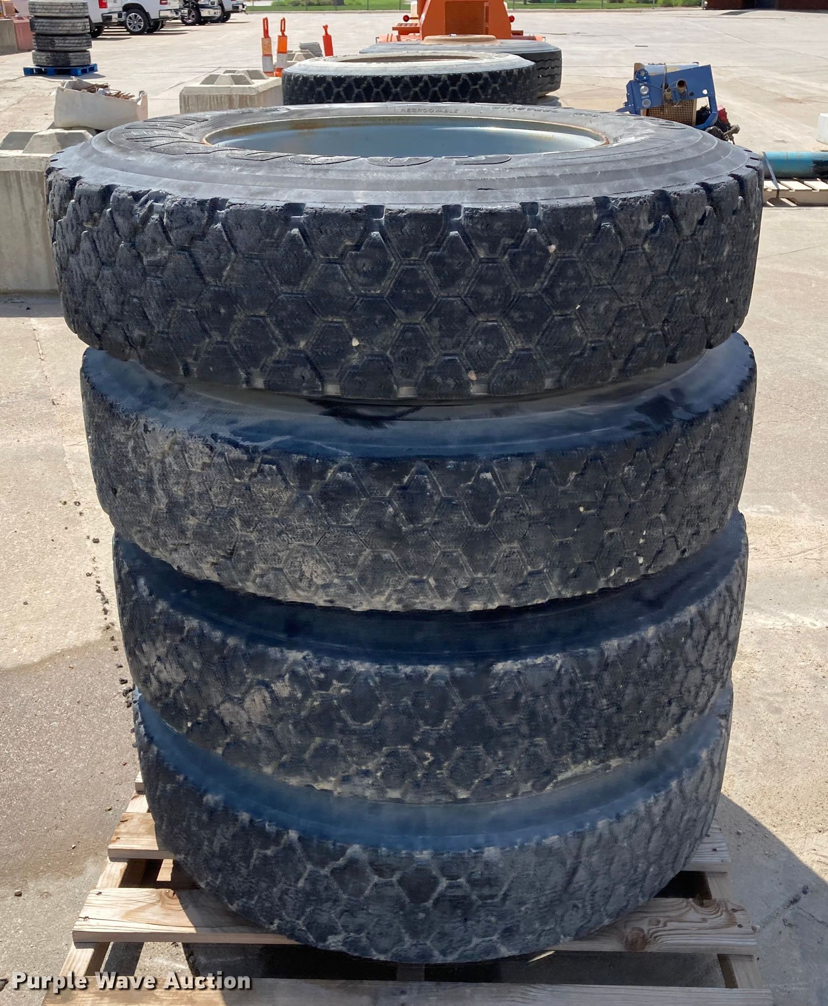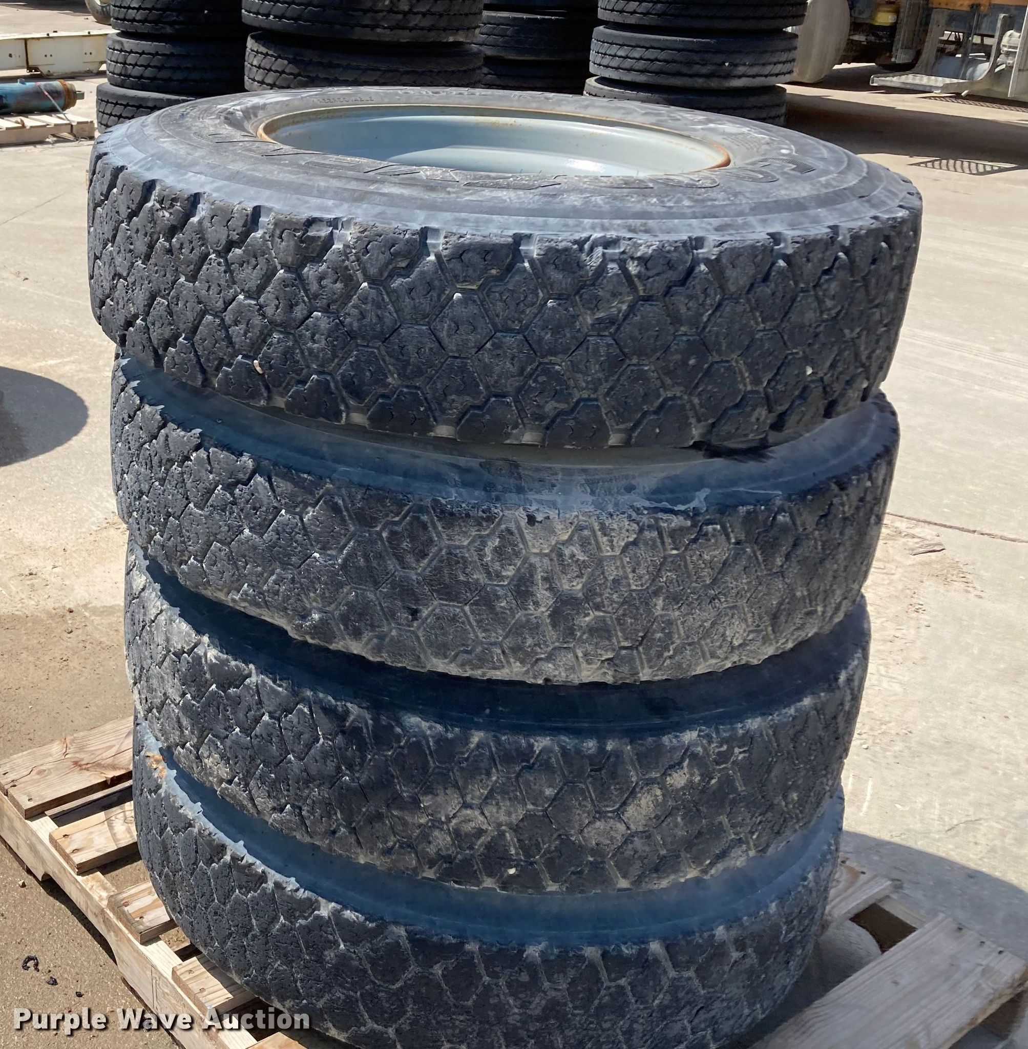 Purple Wave is selling a used Fleet Tires in Kansas. This item is a (8) 11R22.5 tires with the following: (8) 11R22.5 tires. Midwest Concrete Materials. Manhattan, KS 66502