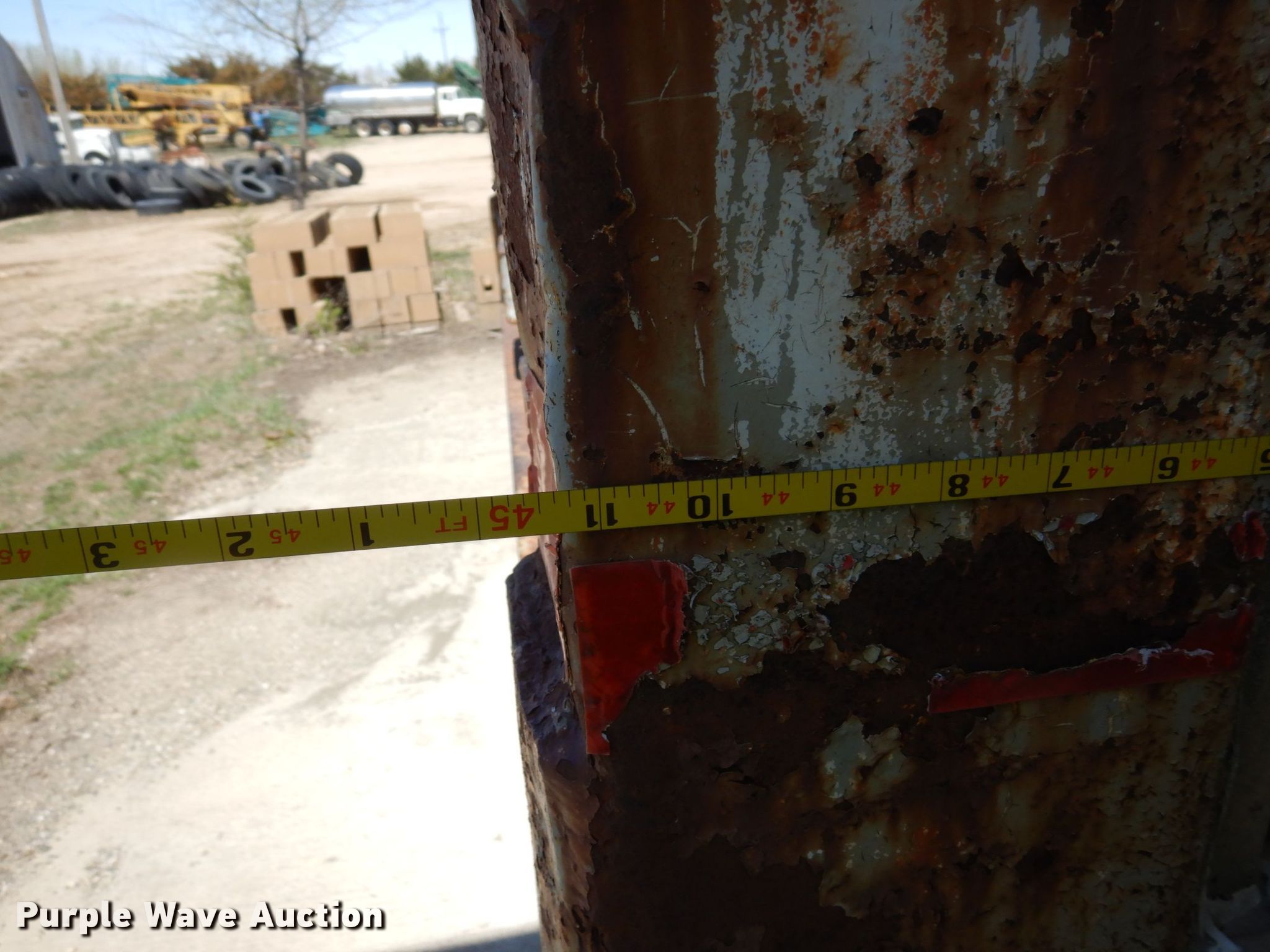 1977 Budd dry van trailer. VIN: ES2F45137996E. Dimensions Overall: 45' L x 96" W. Features Deck type: Wood. Chassis Landing gear: Dual, Suspension: Spring, Brakes: Air, Axles: Tandem. Tires Steel wheels, Size: 11R24.5. Notes Front right tire off bead , Unknown operating condition. Minnesota title. Title distribution may be delayed up to 14 days from verification of funds. Duininck Concrete. 21350 Highway 23 NE. New London, MN 56273