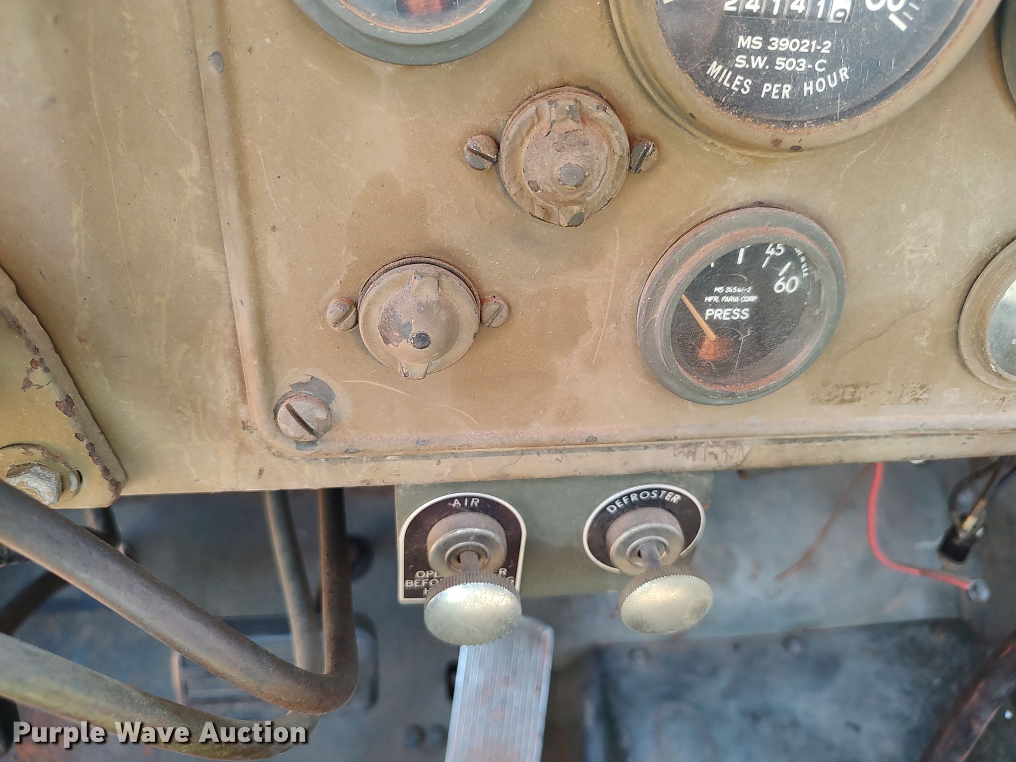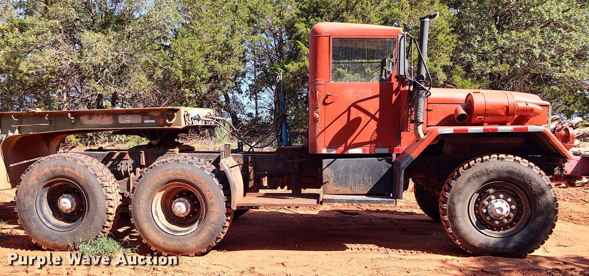 1967 Kaiser M52A2 semi truck. Miles: 24,141 on odometer, Hours: 643 on meter, VIN: 962411494. Engine Cylinders: 6, Fuel type: Diesel. Transmission Manual, Speed: 10. Chassis Axles: Tandem, Suspension: Spring, Brakes: Hydraulic. Features Winch R.M. IND 7411122, Fifth wheel type: Fixed, Fuel tank: Single. Tires Size: 395/85R20. Oklahoma classic title. Title distribution may be delayed up to 30 days from verification of funds. Fay, OK 73646