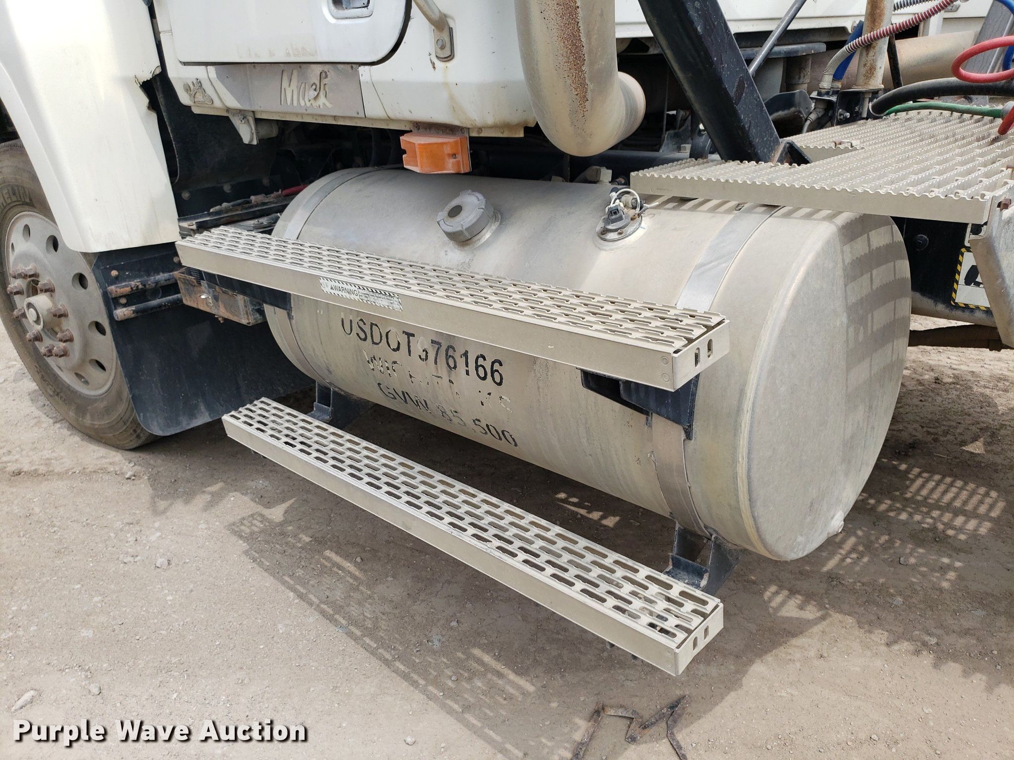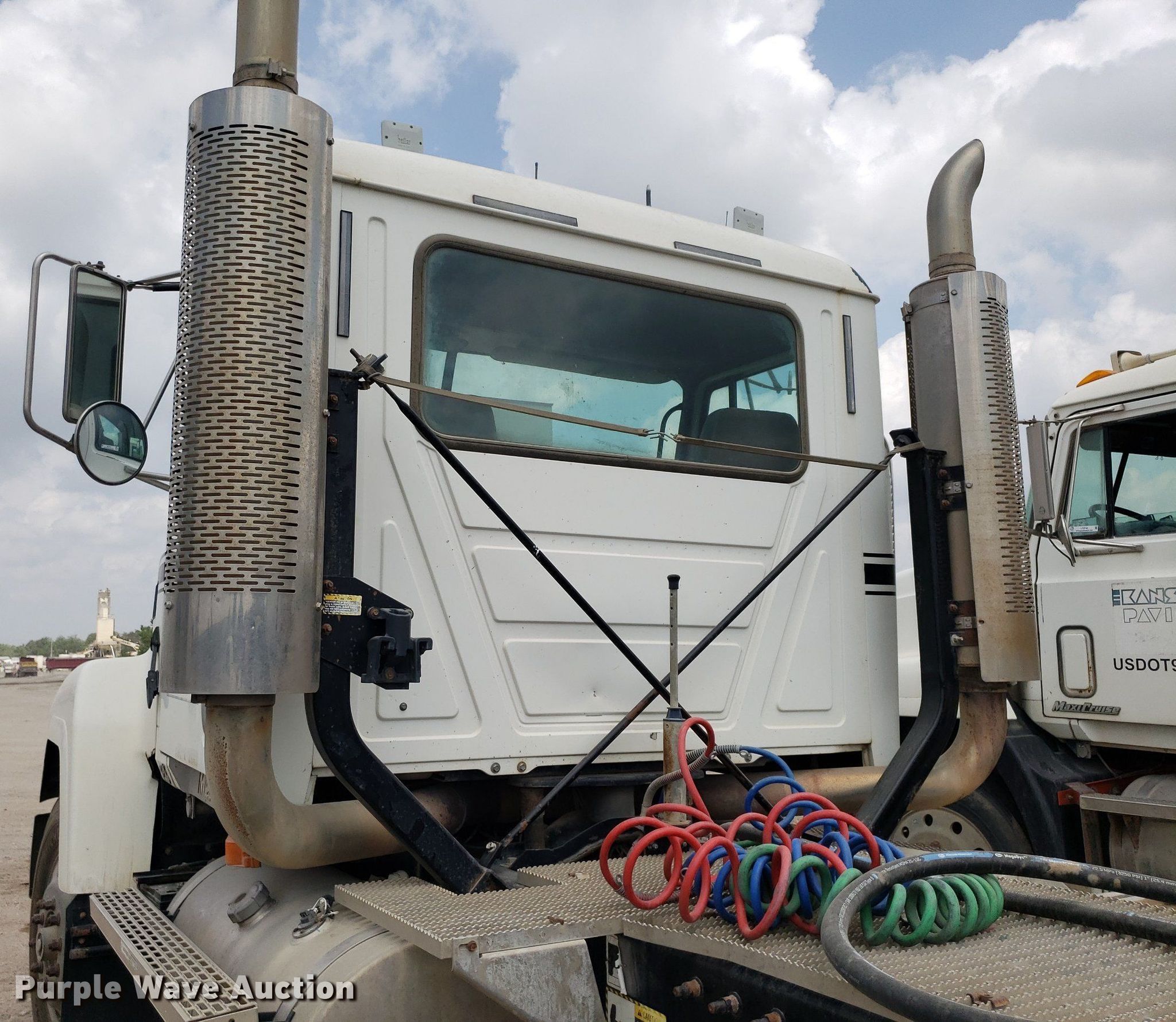 2002 Mack CH613 semi truck. Miles: 11,871 on odometer Actual mileage unknown, Hours: 26,721 on meter, VIN: 1M2AA14Y72W145376. Engine Displacement: 12.0L, Cylinders: 6, Fuel type: Diesel. Transmission Manual, Speed: 9. Chassis Axles: Tandem, Suspension: Camelback, Brakes: Air, PTO, Wet kit. Interior AC, Heat. Features Deck plate: Aluminum, Fifth wheel type: Fixed, Fuel tank: Dual. Tires Size: 11R24.5. Kansas title. Kansas Paving. 4880 North Broadway Street. Wichita, KS 67219