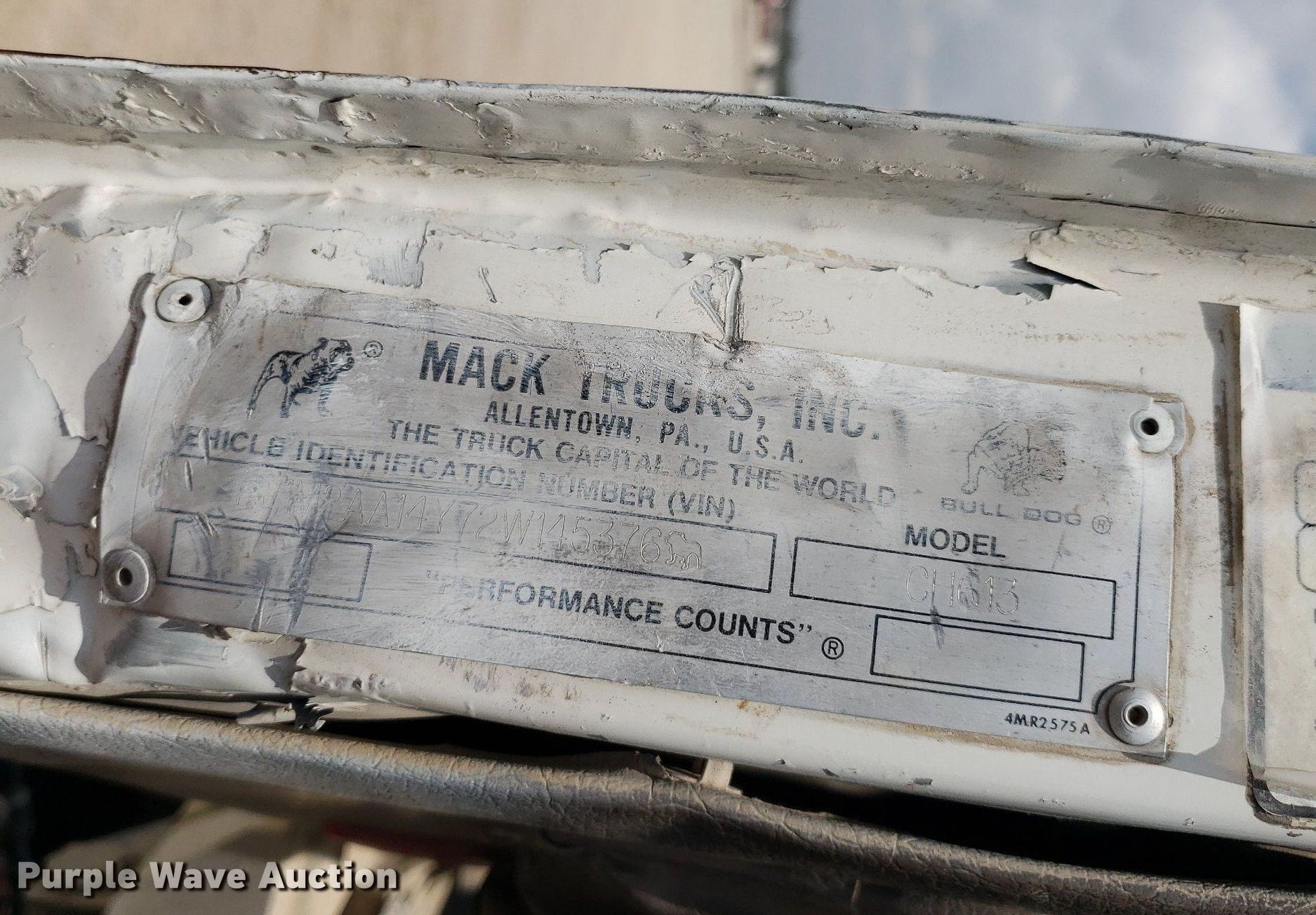 Purple Wave is selling a used Truck Tractor in Kansas. This item is a 2002 Mack CH613 semi truck with the following: Miles: 11,871 on odometer, Actual mileage unknown, Hours: 26,721 on meter, VIN: 1M2AA14Y72W145376