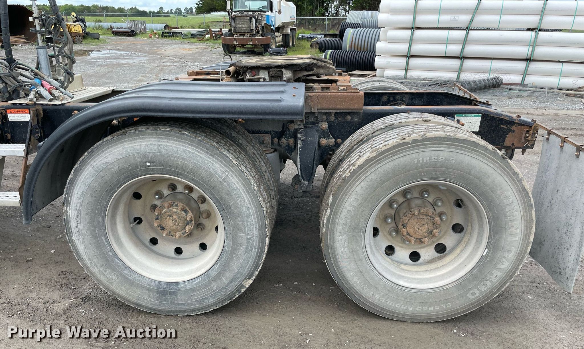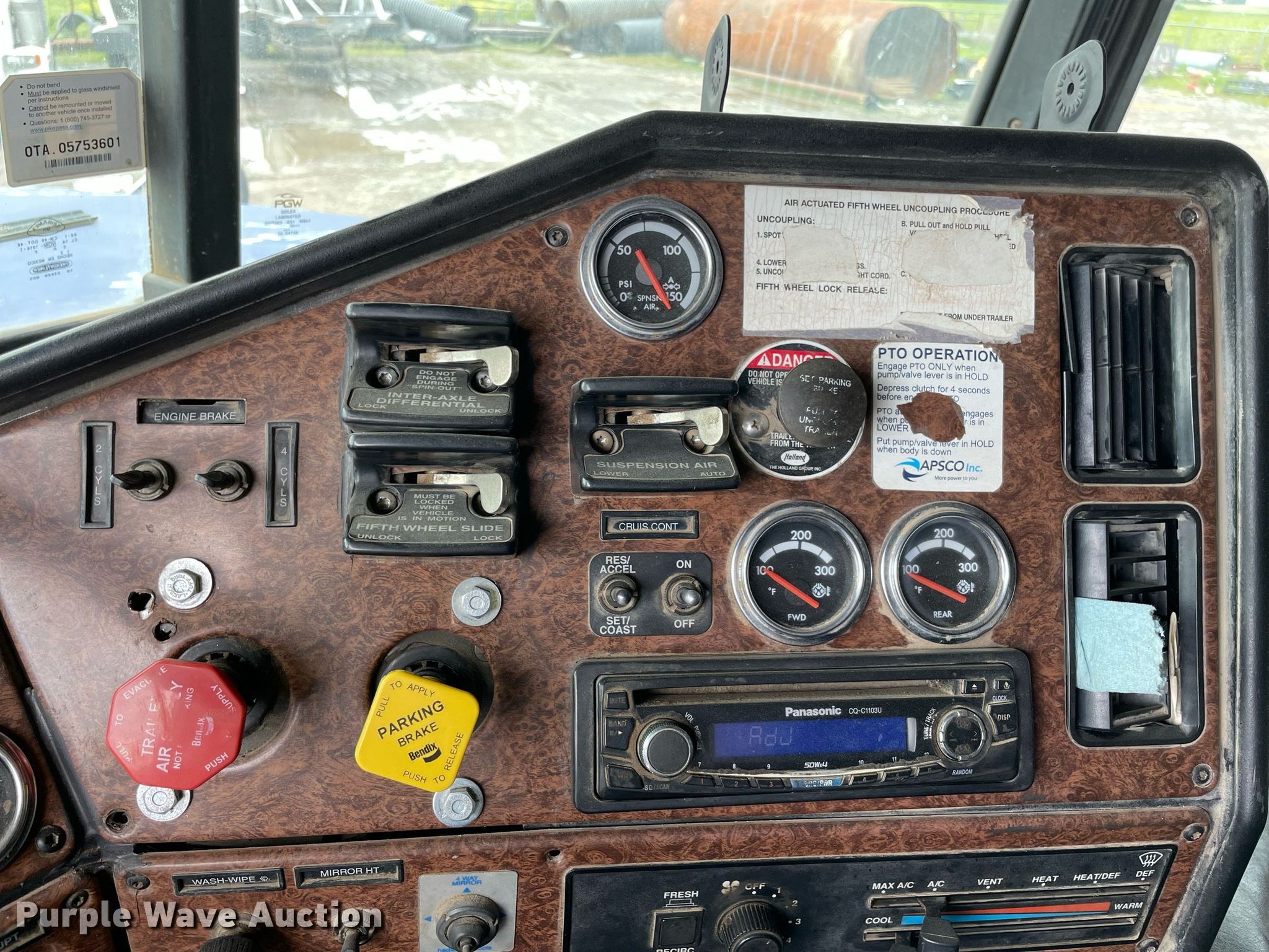 2007 Freightliner FLD semi truck. Miles: 687,183 on odometer, VIN: 1FUJAPAV37DX39847. Engine Caterpillar C15, Displacement: 14.6L, Cylinders: 6, Fuel type: Diesel, Engine brake. Transmission Eaton Fuller, Manual, Speed: 13. Chassis Axles: Tandem, Differential lock: Inter-axle, Suspension: Air Dump valves, Brakes: Air, PTO, Wet kit, GVWR: 52,000 lbs. Interior AC, Heat, Heated mirrors, Cruise control, Air ride cab. Features Deck plate: Aluminum, Fifth wheel type: Air operated, Sliding, Fuel tank: Dual. Tires Size: 11R22.5. Notes Dash warning indicator: ABS, Windshield chipped or cracked. Oklahoma title. Robinson Construction, LLC. Limestone Road. Wilburton, OK 74578