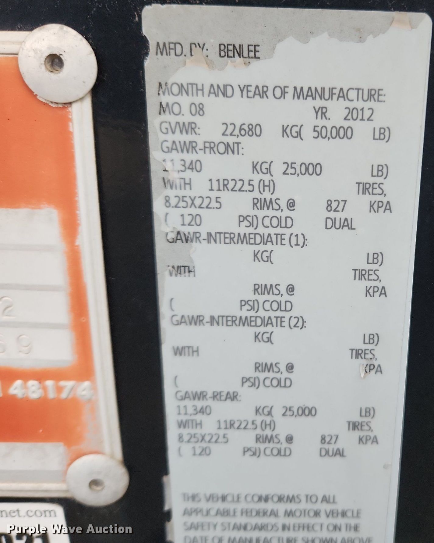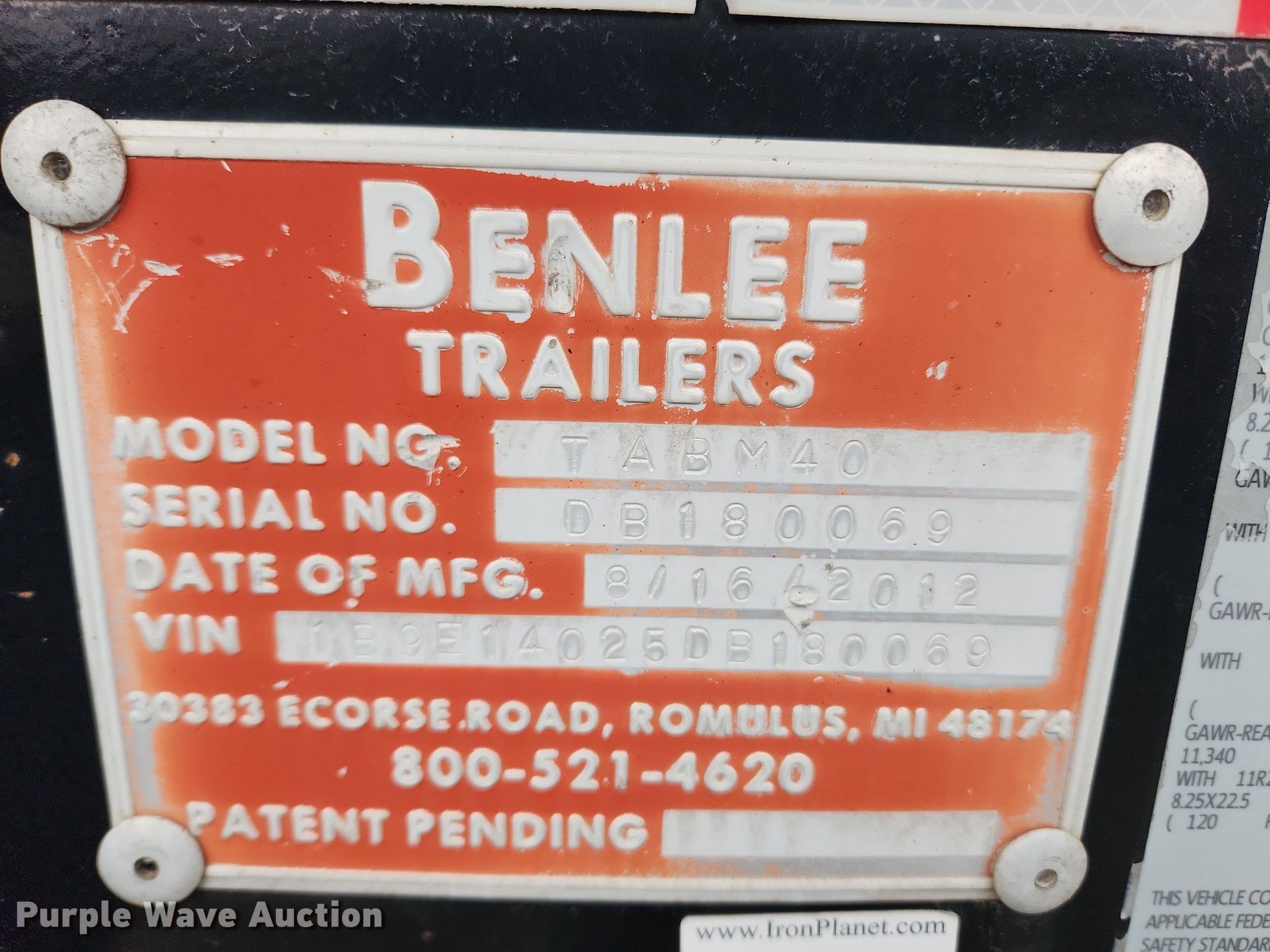 Purple Wave is selling a used Container Trailer in Kansas. This item is a 2013 Benlee TABM40 container trailer with the following: VIN: 1B9E14025DB180069