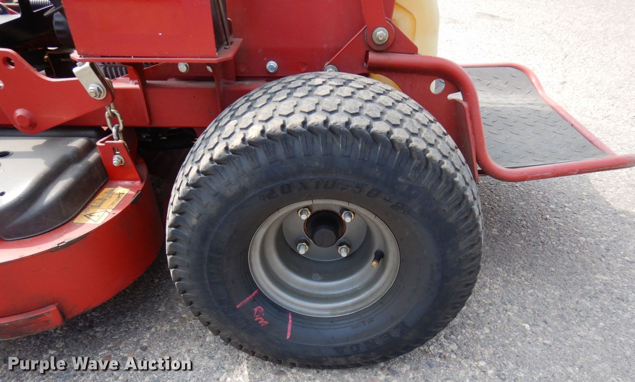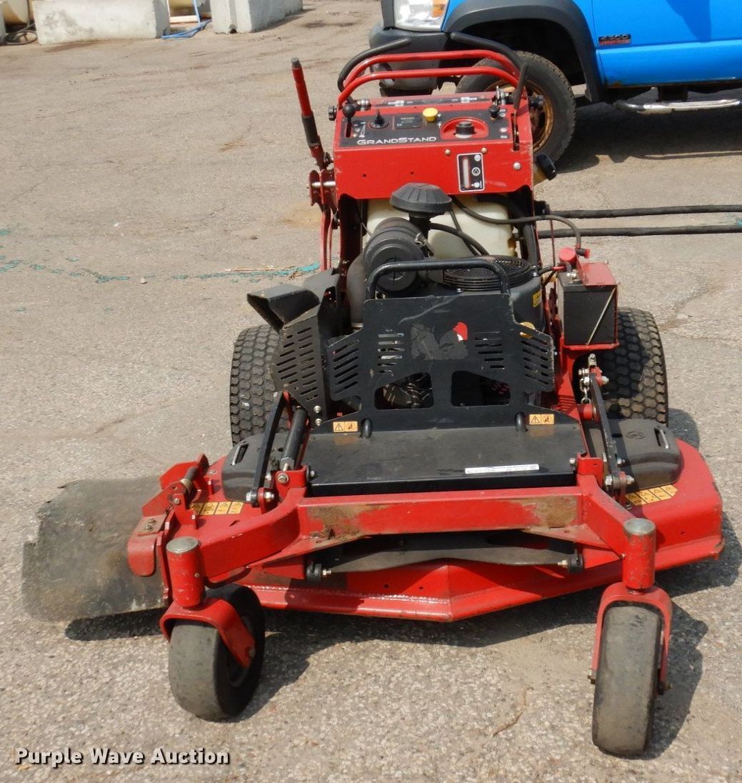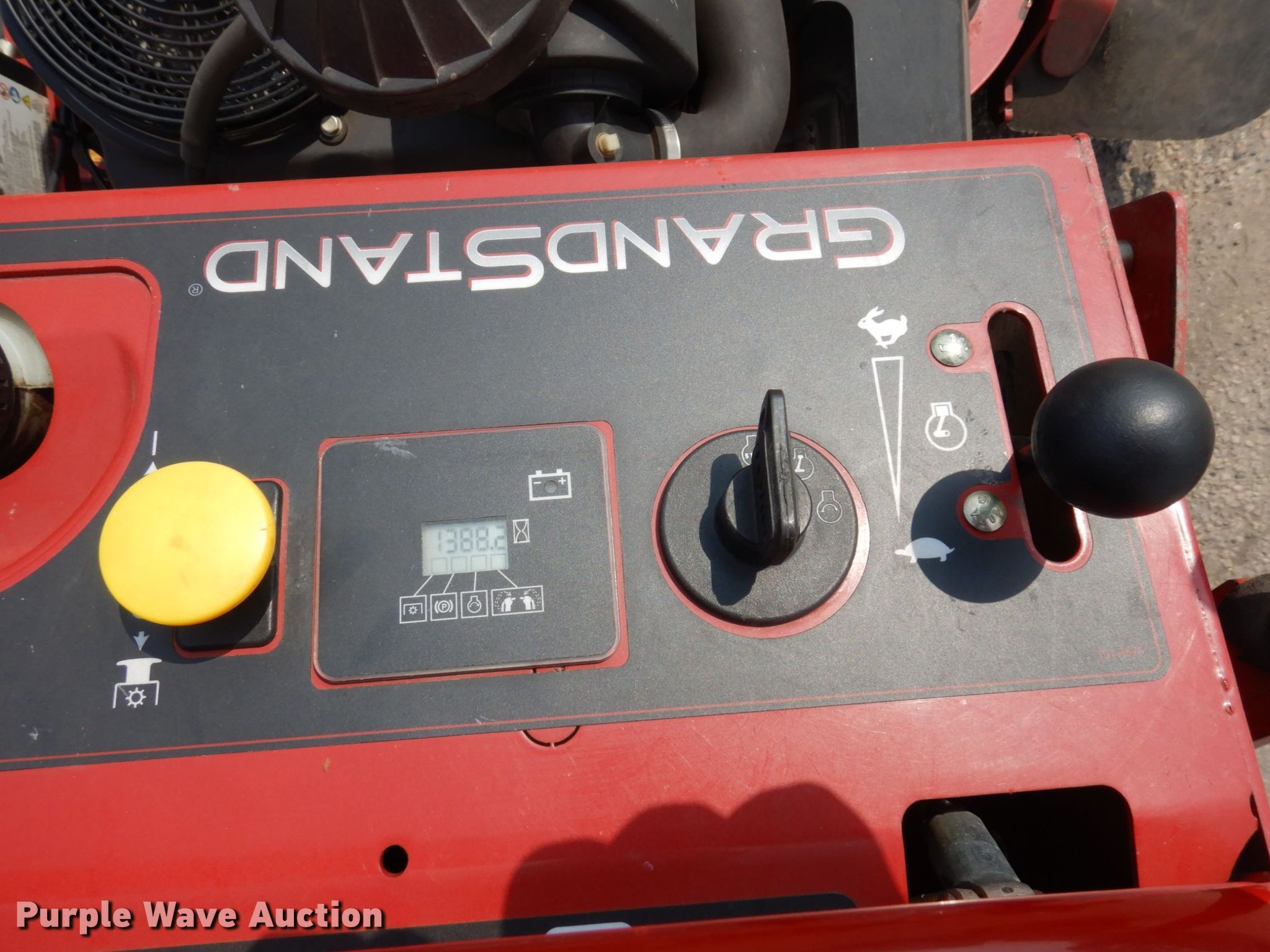 Toro Grandstand lawn mower. Hours: 1,388 on meter, Cutting width: 48", Serial: 403390318. Engine Kawasaki FX691V, Cylinders: 2, Fuel type: Gas. Transmission Hydrostatic. Features Stand on. Tires Front: 11x4.00-5, Rear: 20x10.5-8. 9600 Newton Ave S. Bloomington, MN 55431