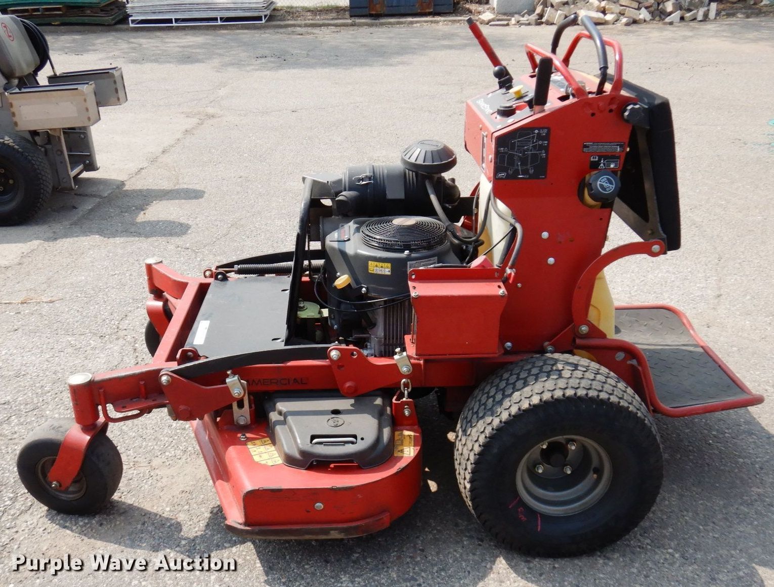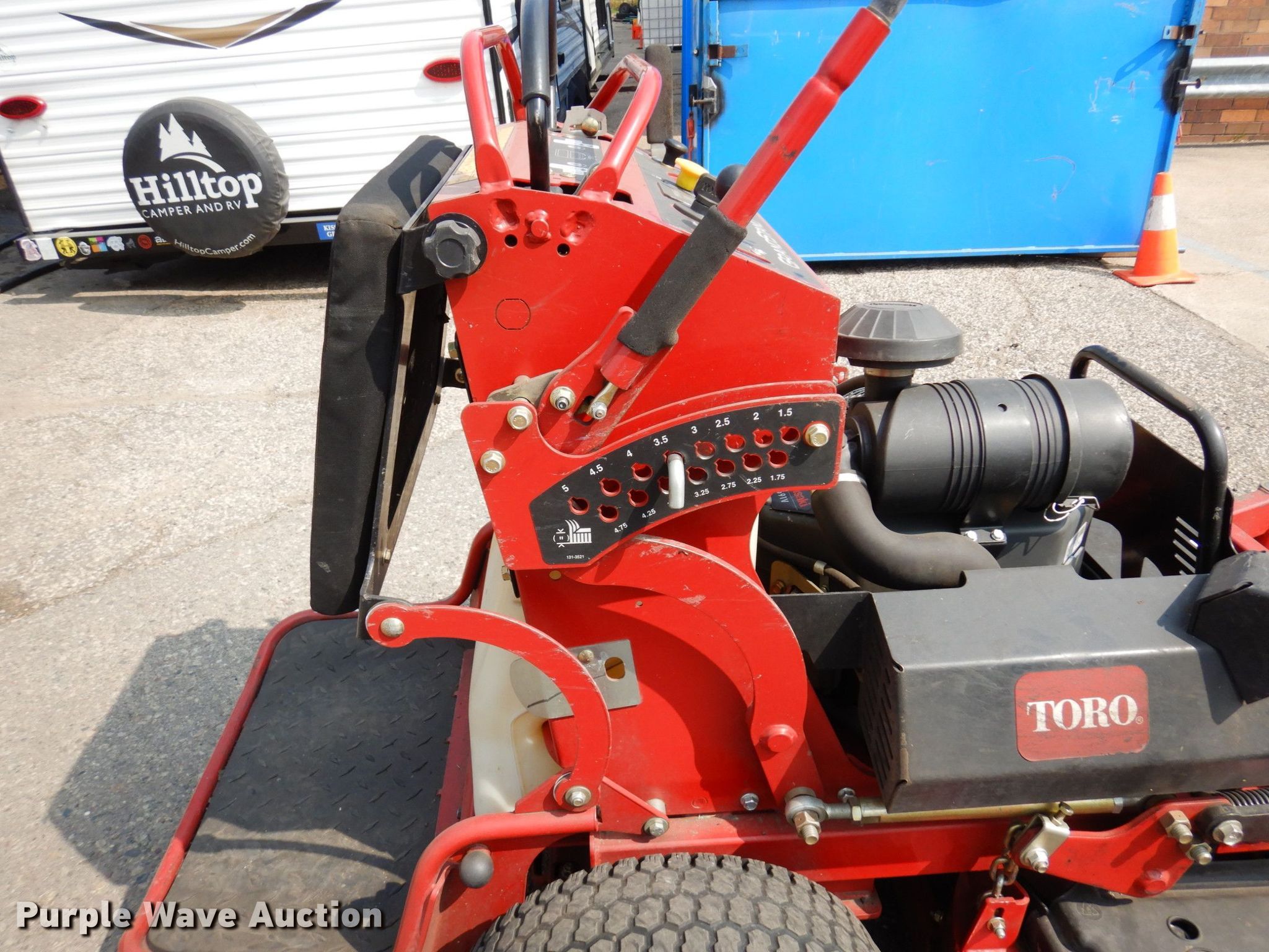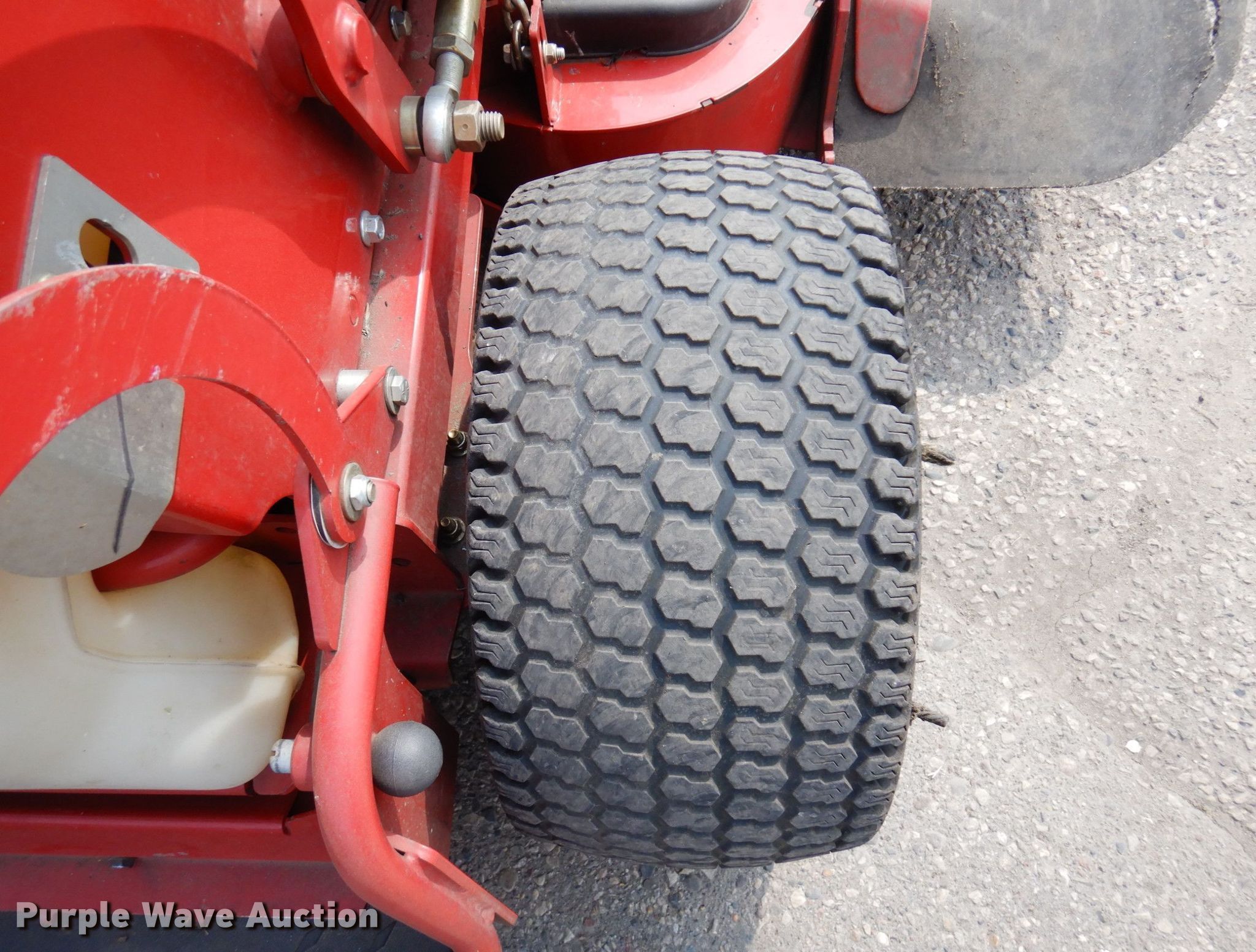 Toro Grandstand lawn mower. Hours: 1,388 on meter, Cutting width: 48", Serial: 403390318. Engine Kawasaki FX691V, Cylinders: 2, Fuel type: Gas. Transmission Hydrostatic. Features Stand on. Tires Front: 11x4.00-5, Rear: 20x10.5-8. 9600 Newton Ave S. Bloomington, MN 55431