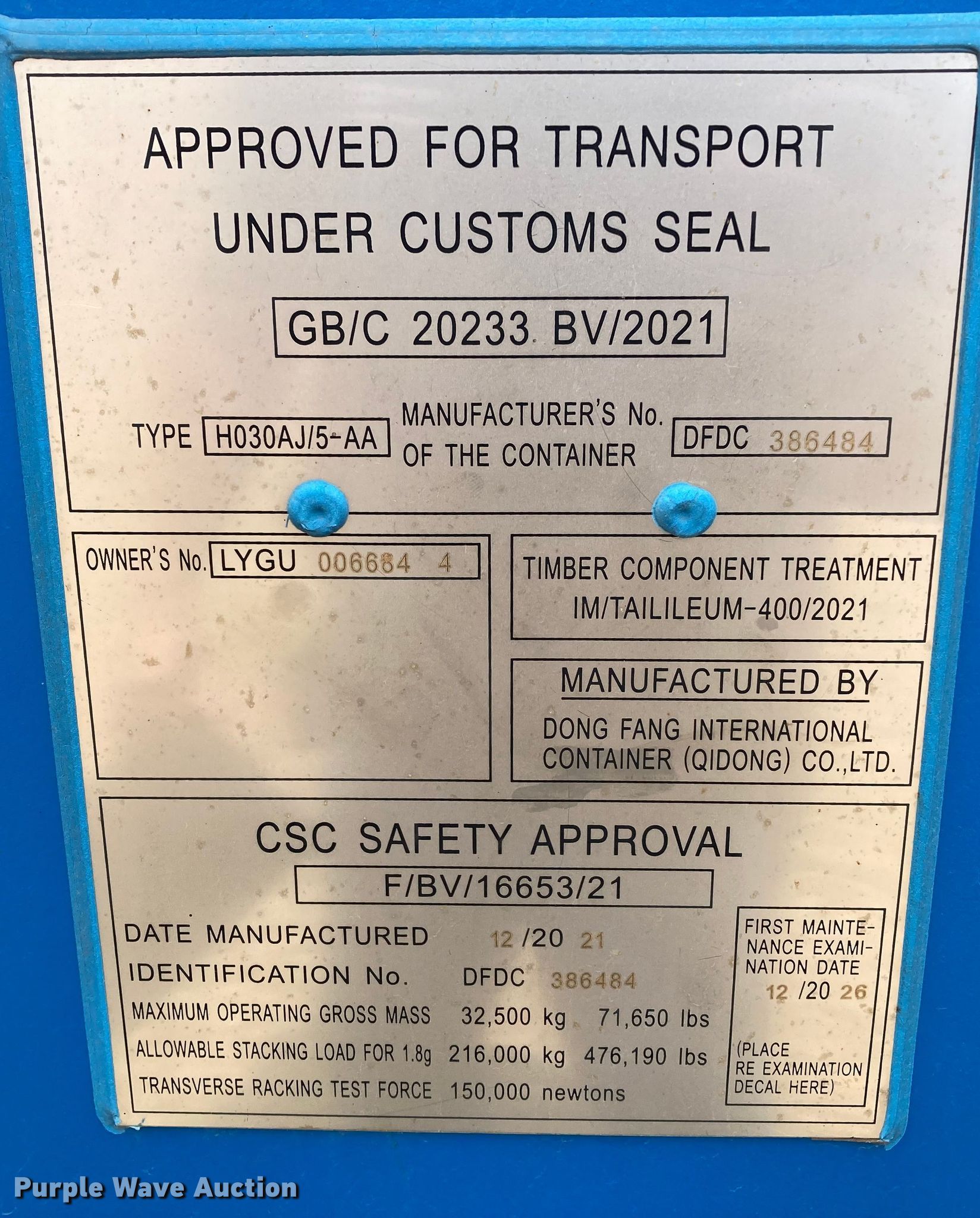 2021 Dongfang H030AJ/5-AA storage container | SOLD! June 21 Vehicles and Equipment Auction