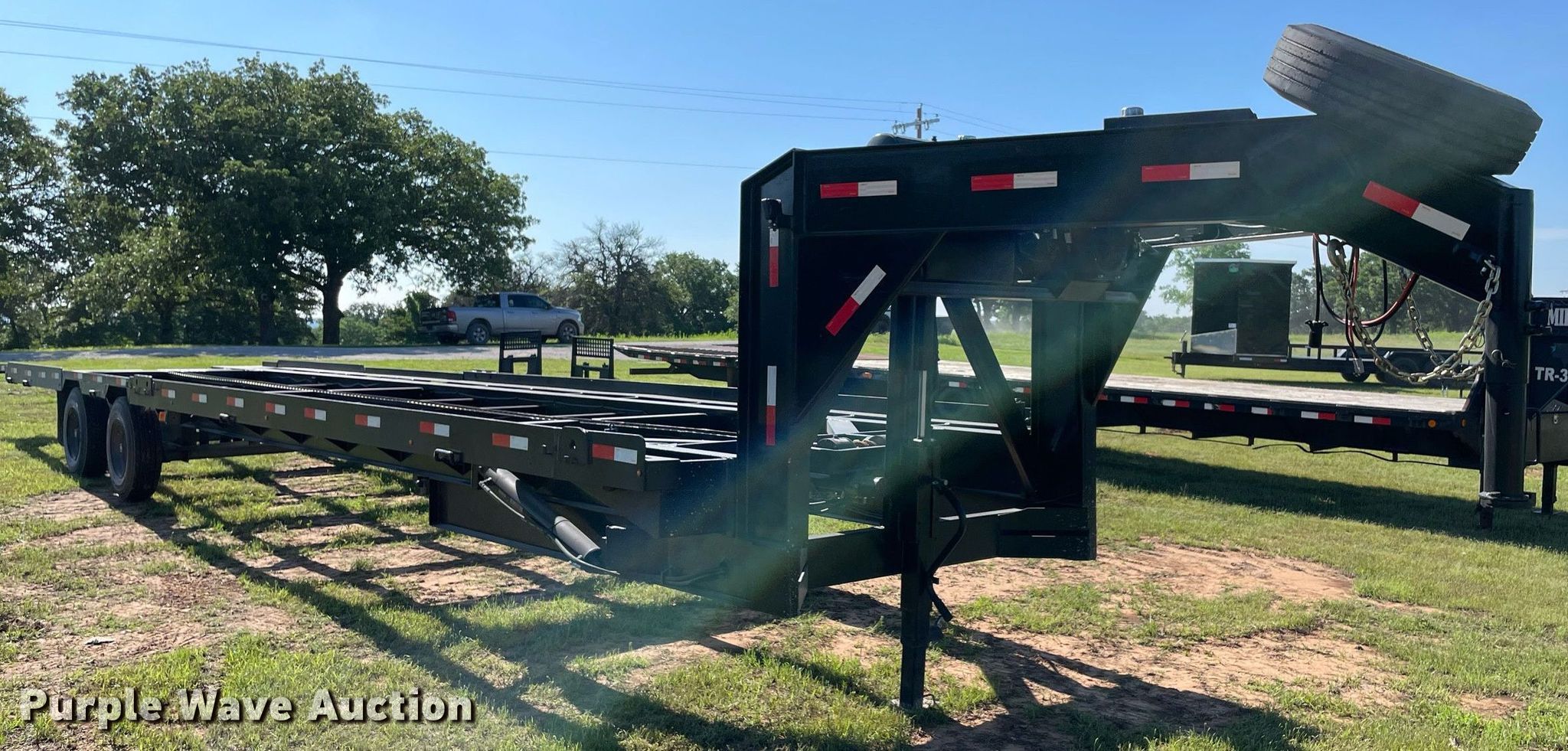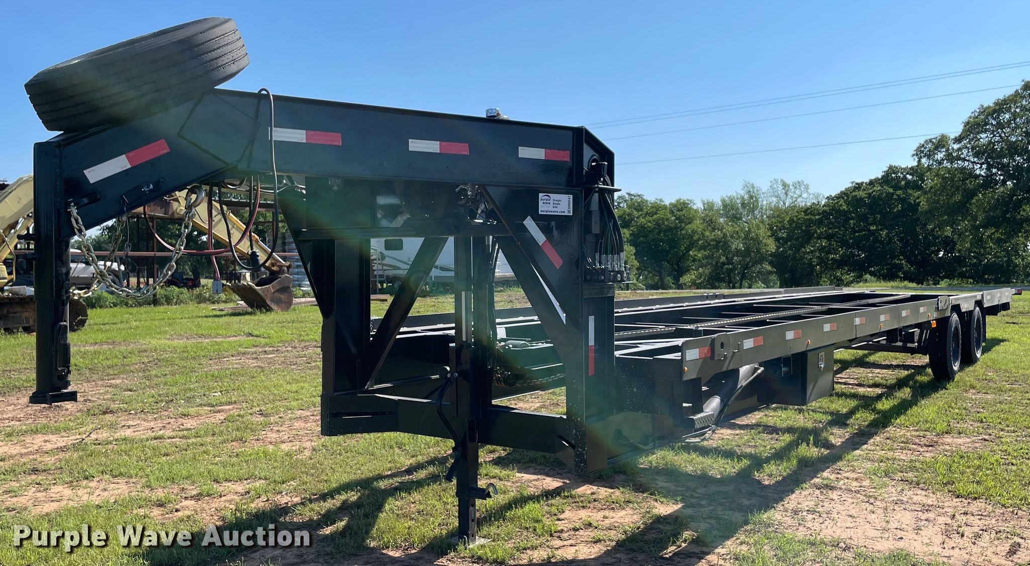 2023 Altha coNex container trailer. VIN: 1A9GN4025PA498145. Dimensions Overall: 48' 6" L x 103" W, Deck: 40' 6" L x 103" W. Features Winch Pierce, Hydraulic controls: Remote control. Chassis Hitch: Gooseneck, Landing gear: Dual, Suspension: Spring, Brakes: Electric, Axles: Spread, GVWR: 20,000 lbs. Tires Size: 235/75R17.5. Seller is an Oklahoma licensed motor vehicle dealer. Transfer of ownership documentation will be a manufacturer's certificate of origin that will be assigned and distributed by the dealer. Please contact the seller for distribution questions. I-35 Trading Company. Overbrook, OK 73453