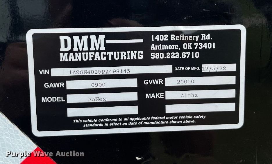Purple Wave is selling a used Container Trailer in Oklahoma. This item is a 2023 Altha coNex container trailer with the following: VIN: 1A9GN4025PA498145