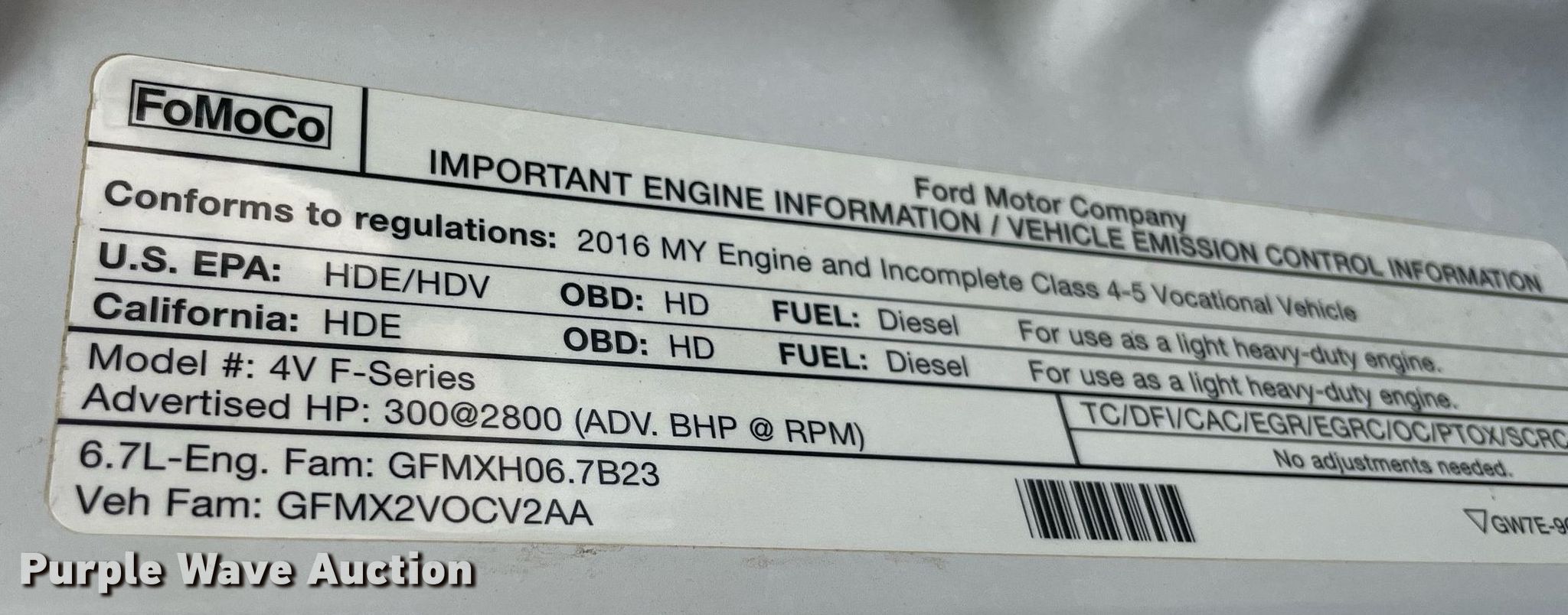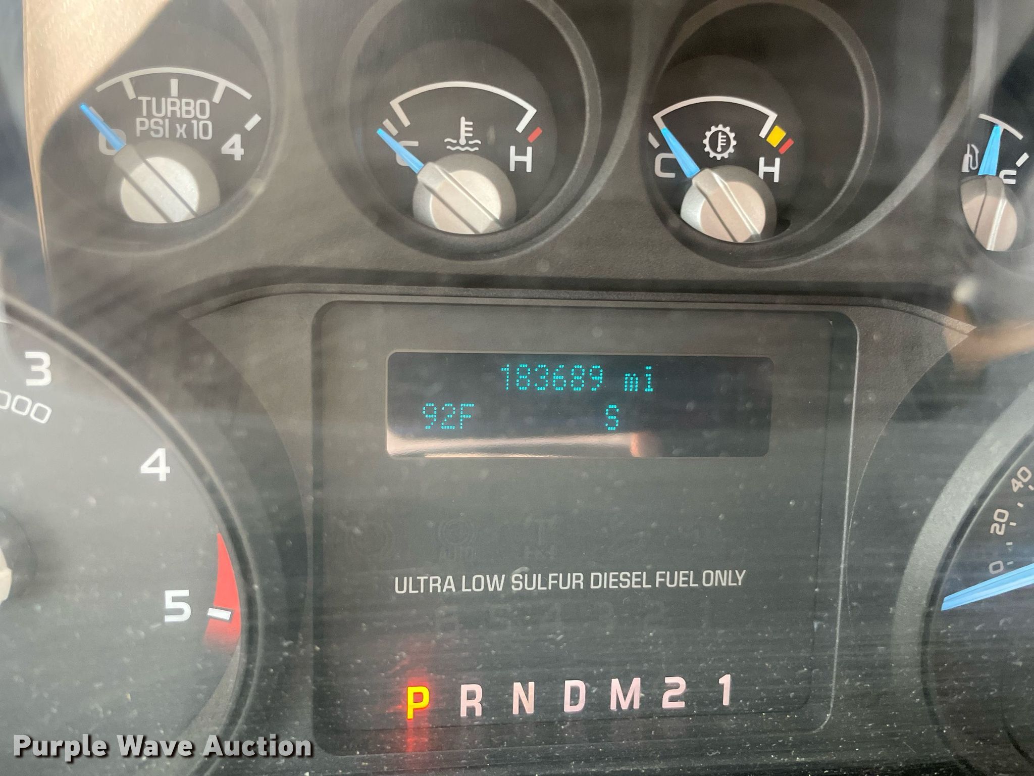 2016 Ford F550 SuperCab flatbed truck. Miles: 183,689 on odometer, VIN: 1FD0X5HT9GEA52856. Engine Displacement: 6.7L, Cylinders: 8, Fuel type: Diesel. Transmission Automatic. Chassis Four wheel drive, Suspension: Spring, Brakes: Hydraulic. Interior AC, Heat, Heated mirrors, Power windows, Power locks, Cruise control, Auxiliary controls, Brake controller. Features Flatbed 10' L x 96" W, Winch Capacity: 12,000 lbs, Hitch: Gooseneck. Tires Size: 225/70R19.5. Oklahoma title. Title distribution may be delayed up to 14 days from verification of funds. Western Farmers Electric Cooperative. 701 Northeast 7th Street. Anadarko, OK 73005