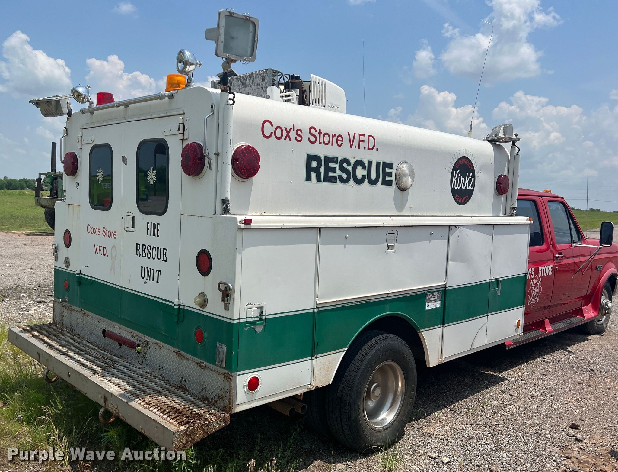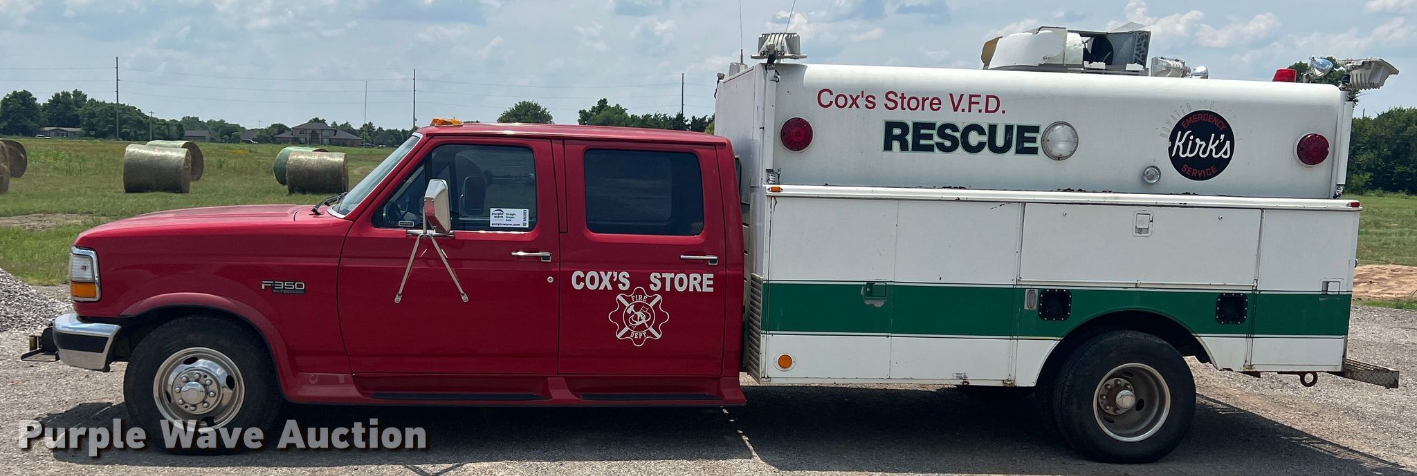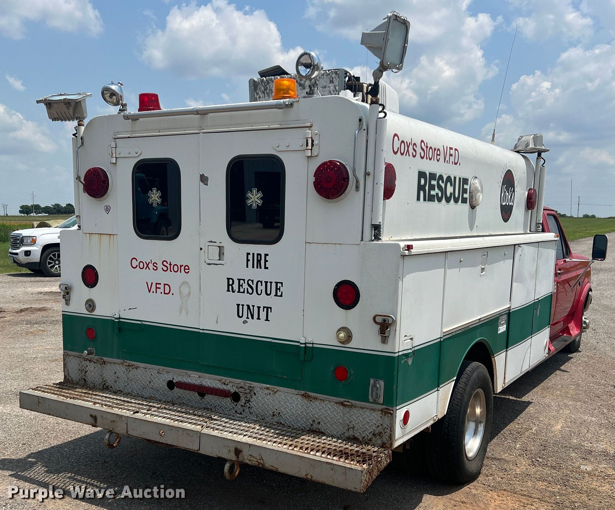 1996 Ford F350 Crew Cab rescue vehicle has sold in Lawton, Oklahoma for $3960. Item DN3023 sold on June 21st, 2023.
