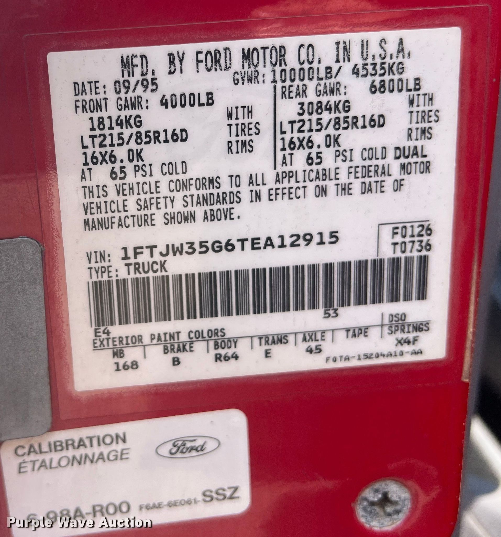 - VIN: 1FTJW35G6TEA12915