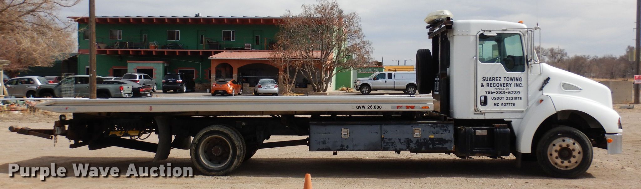 This 2003 Kenworth T300 rollback truck will sell to the highest bidder regardless of price.
