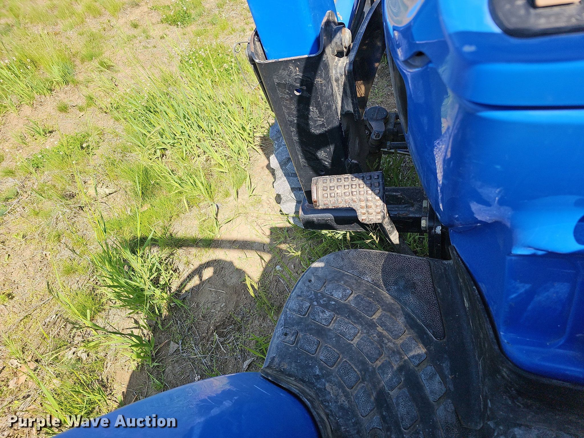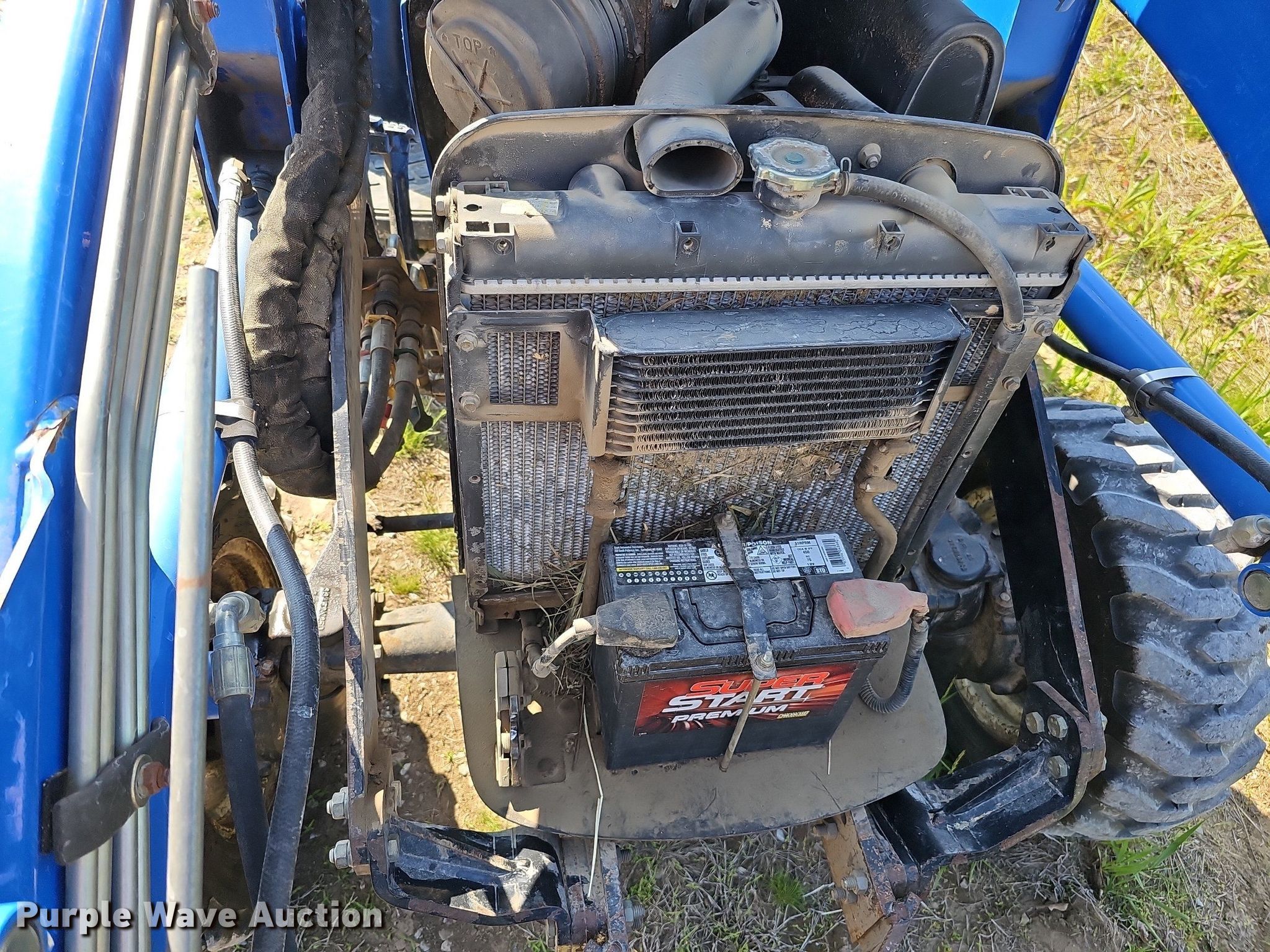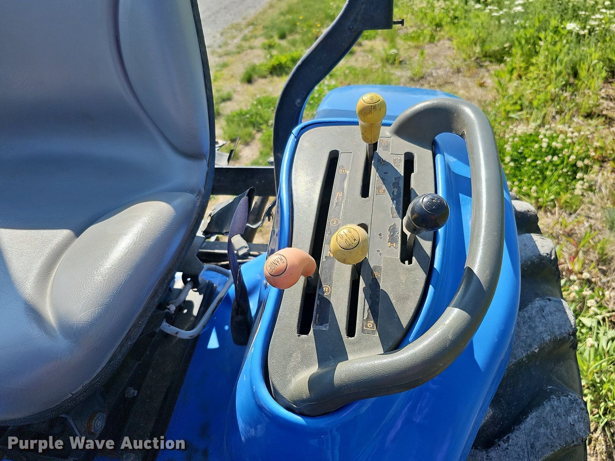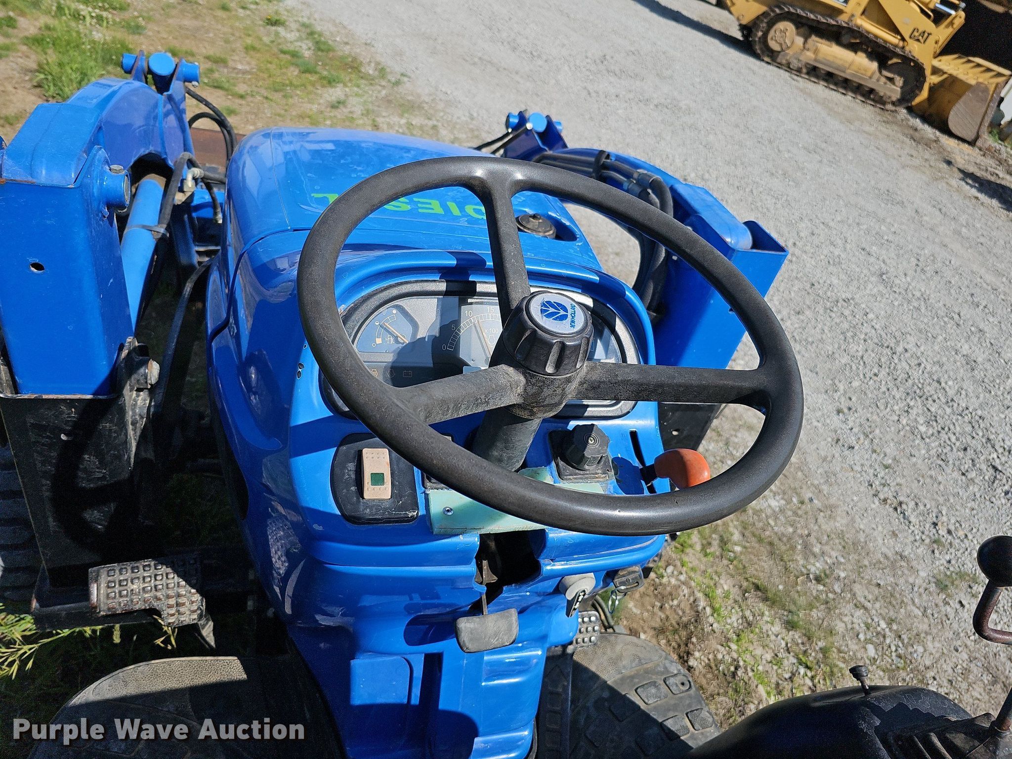 New Holland TC34DA MFWD tractor. Hours: 1,631 on meter, Serial: Z6DA01209. Engine Serial: 18680, Cylinders: 3, Fuel type: Diesel. Transmission Hydrostatic. Features PTO: 540, Mid-mount PTO: 1000, Three point, Loader New Holland 14LA, Bucket Width: 60".. Tires Front: 25x8.50-14, Rear: 15x10.5. Notes PTO issues. 1841 180th Street. Red Oak, IA 51566