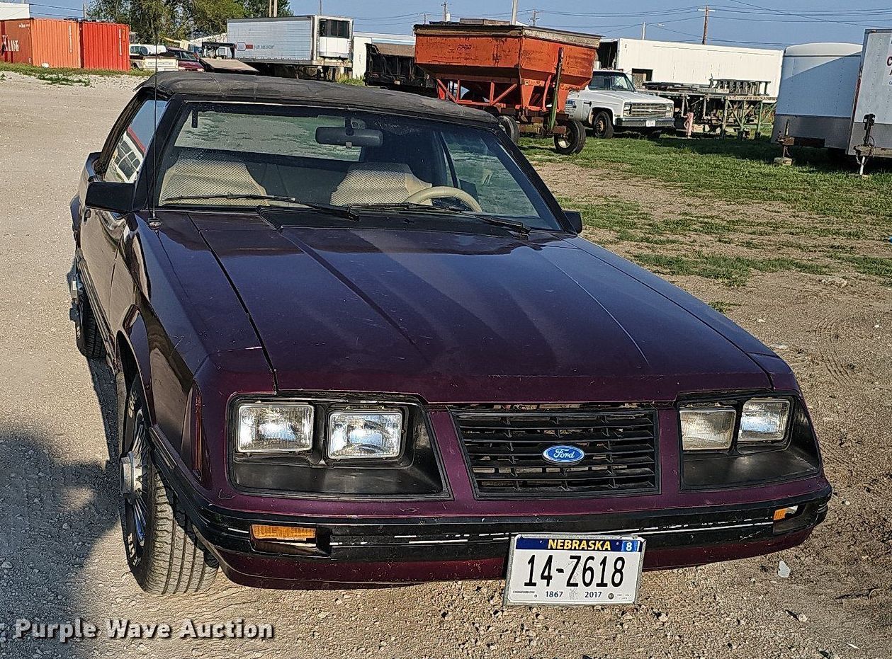 Purple Wave is selling a used Passenger Vehicle in Nebraska. This item is a 1983 Ford Mustang GLX convertible with the following: Miles: 7,618 on odometer, VIN: 1FABP2731DF133097