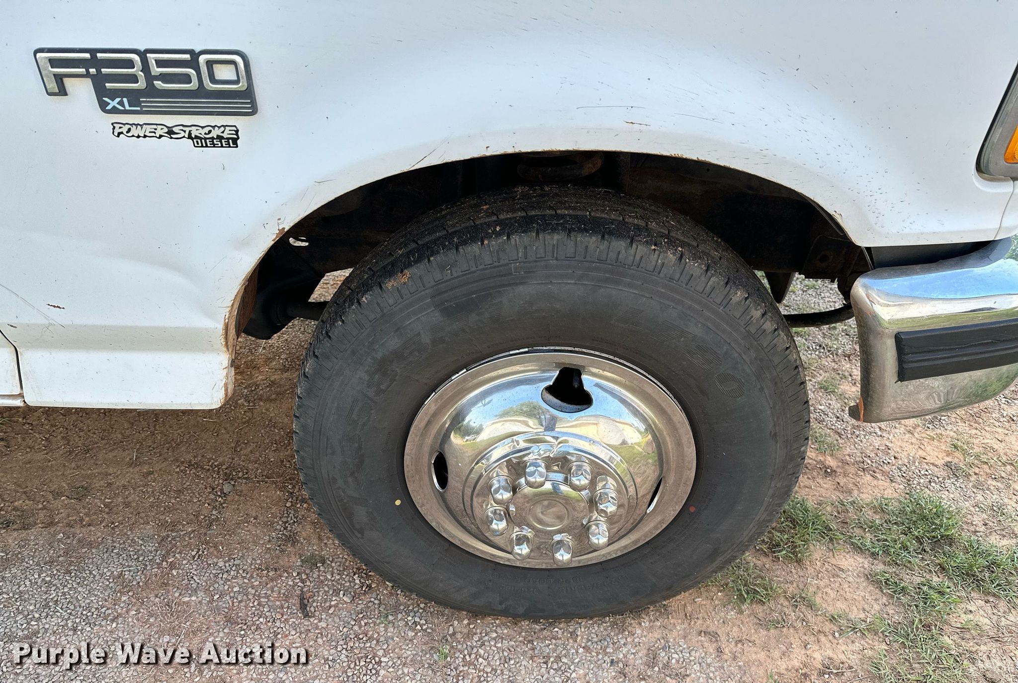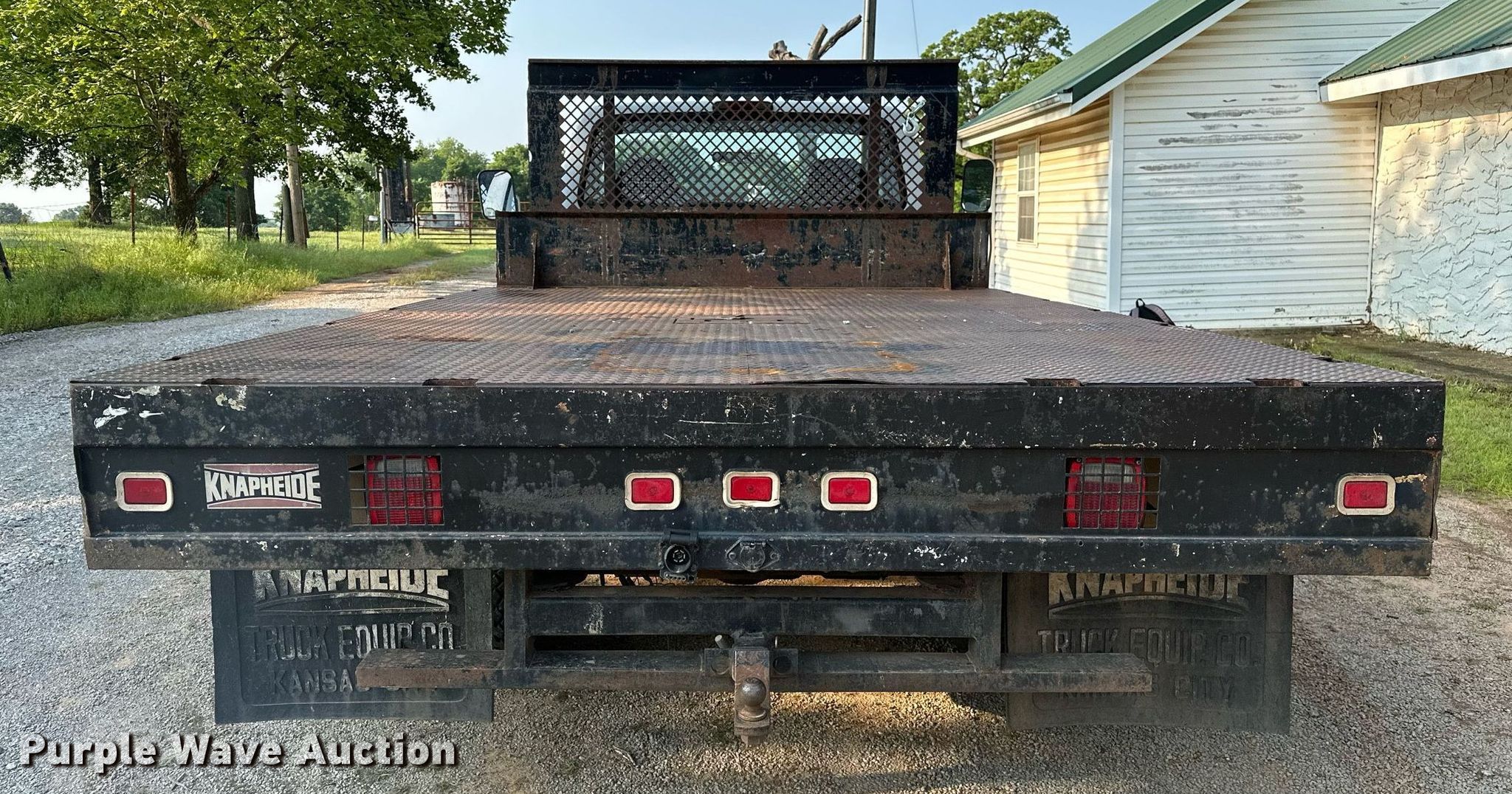 1997 Ford F350 flatbed pickup truck. Miles: 220,908 on odometer, Miles or hours may vary, unit still in use, VIN: 3FEKF37F6VMA51789. Engine Displacement: 7.3L V8 OHV, Cylinders: 8, Fuel type: Diesel. Transmission Automatic. Interior AC, Heat. Features Flatbed Knapheide , 11' 3" L x 94" W, Hitch: Gooseneck. Tires Size: 235/85R16. Notes Contents not included, Windshield chipped or cracked. Oklahoma title. Title distribution may be delayed up to 14 days from verification of funds. Stems & Stones Cemetery Services. 340067 Oklahoma 66. Chandler, OK 74834
