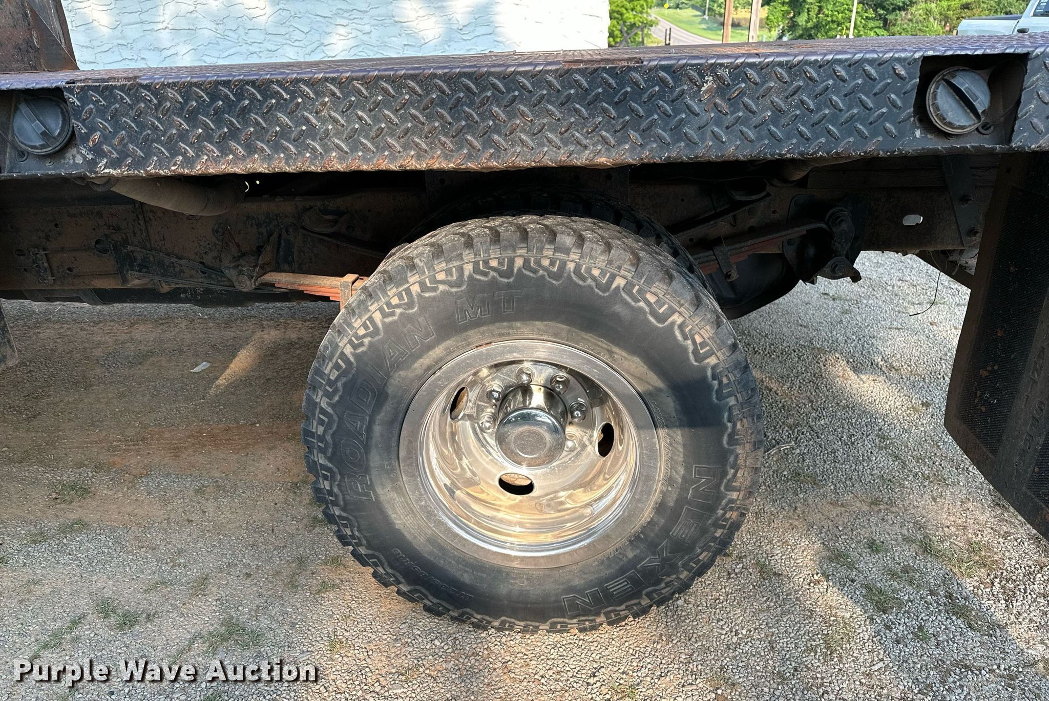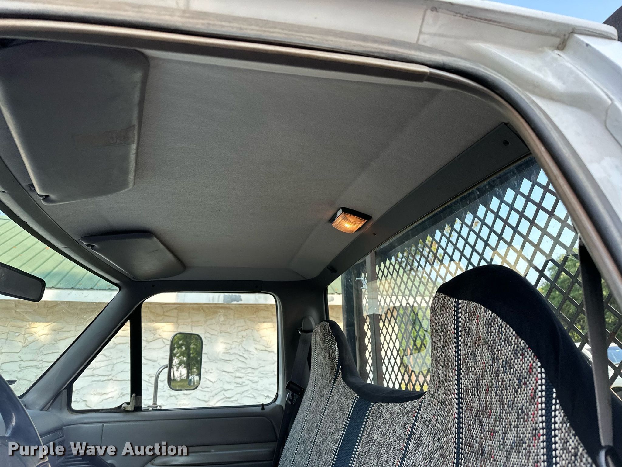 This 1997 Ford F350 flatbed pickup truck will sell to the highest bidder regardless of price.