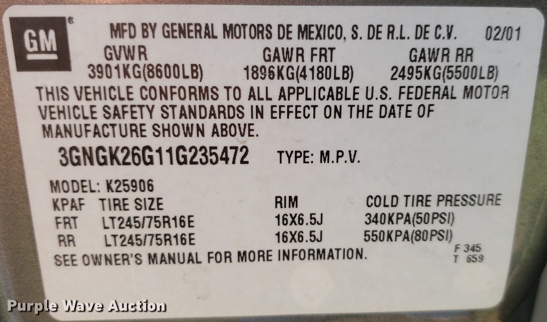 Purple Wave is selling a used Passenger Vehicle in Kansas. This item is a 2001 Chevrolet Suburban SUV with the following: Miles: 189,469 on odometer, VIN: 3GNGK26G11G235472
