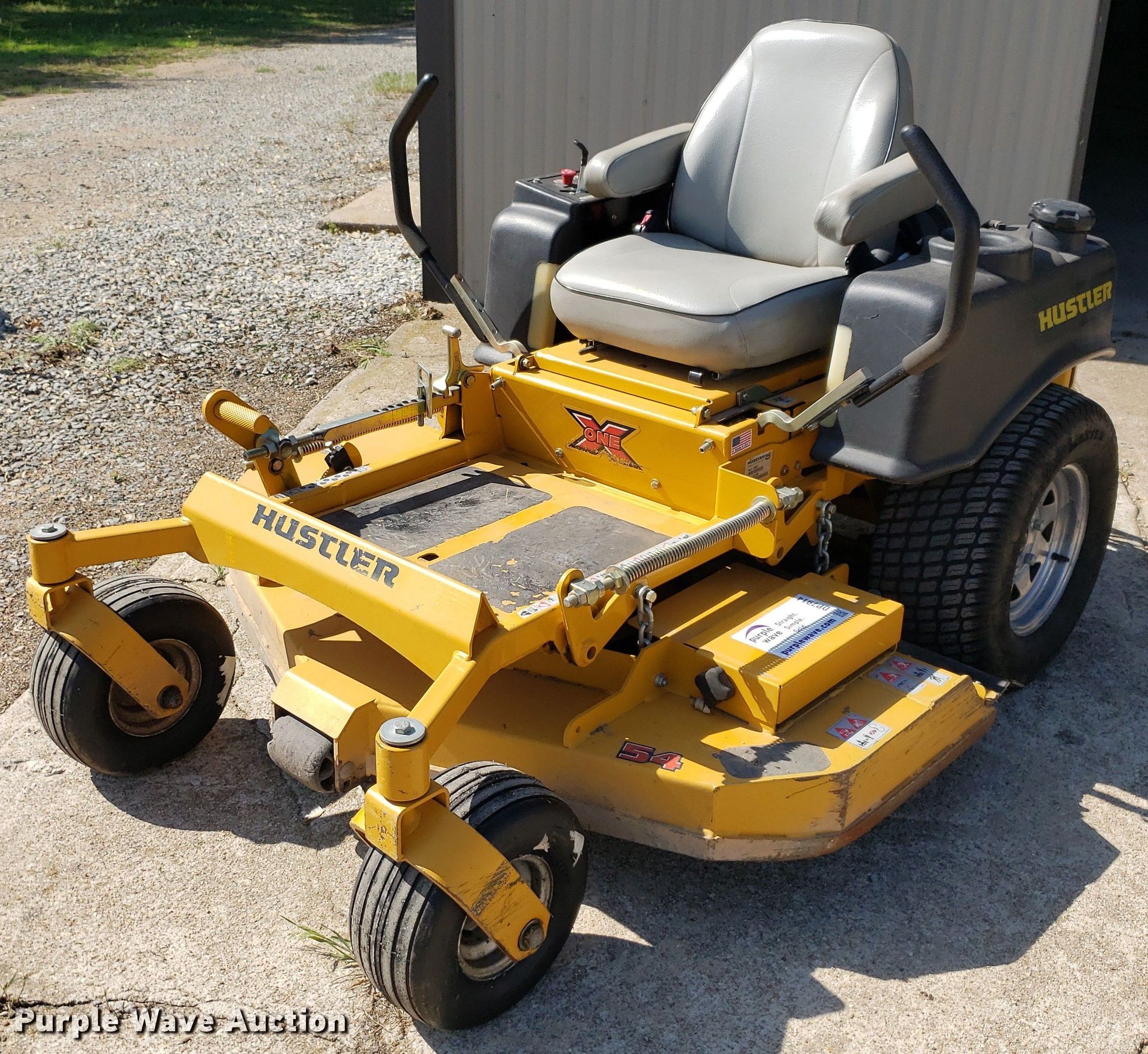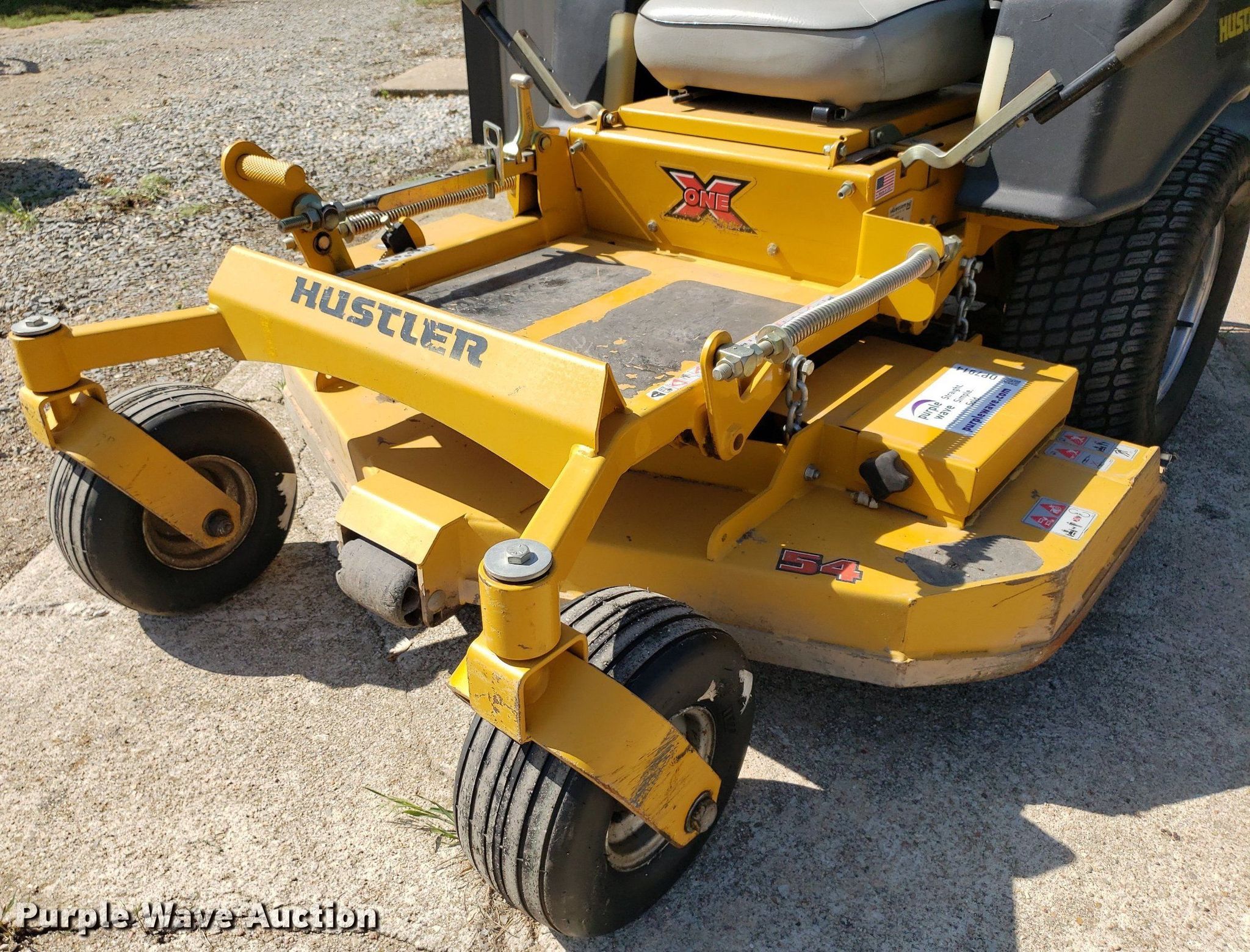 Purple Wave is selling a used Lawn Mower in Kansas. This item is a Hustler X-One ZTR lawn mower with the following: Hours: 1,762 on meter, Cutting width: 54", Serial: 11021982