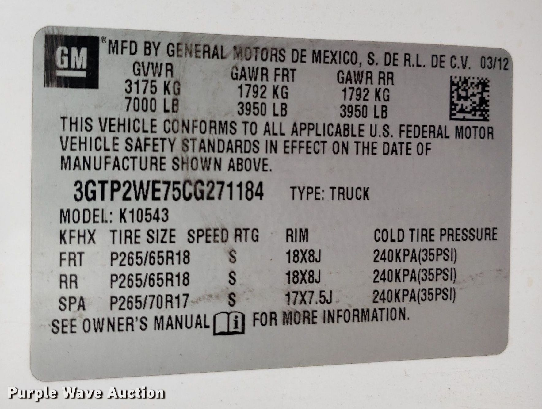 2012 GMC Sierra 1500 Crew Cab pickup truck. Miles: 189,060 on odometer, VIN: 3GTP2WE75CG271184. Engine Displacement: 5.3L V8 OHV, Cylinders: 8, Fuel type: Gas. Transmission Automatic, Four wheel drive. Interior AC, Heat, Seat: Heated, Power driver, Power passenger, Power windows, Power locks, Cruise control. Tires Size: 35x11.50R20. Notes Dash warning indicator: TPMS. Kansas title. Title distribution may be delayed up to 14 days from verification of funds. AMR Steel. 800 E 21st St N. Wichita, KS 67214
