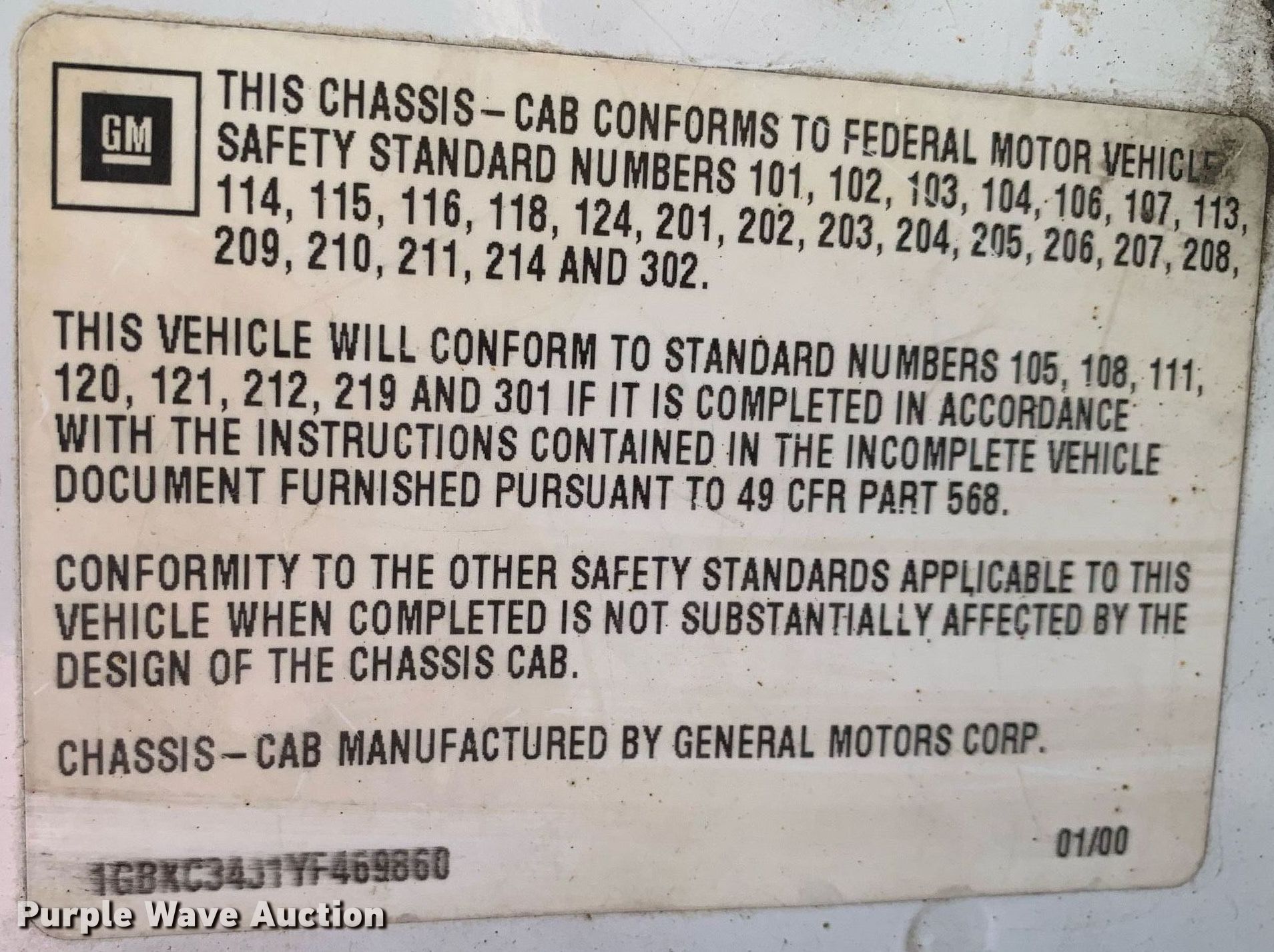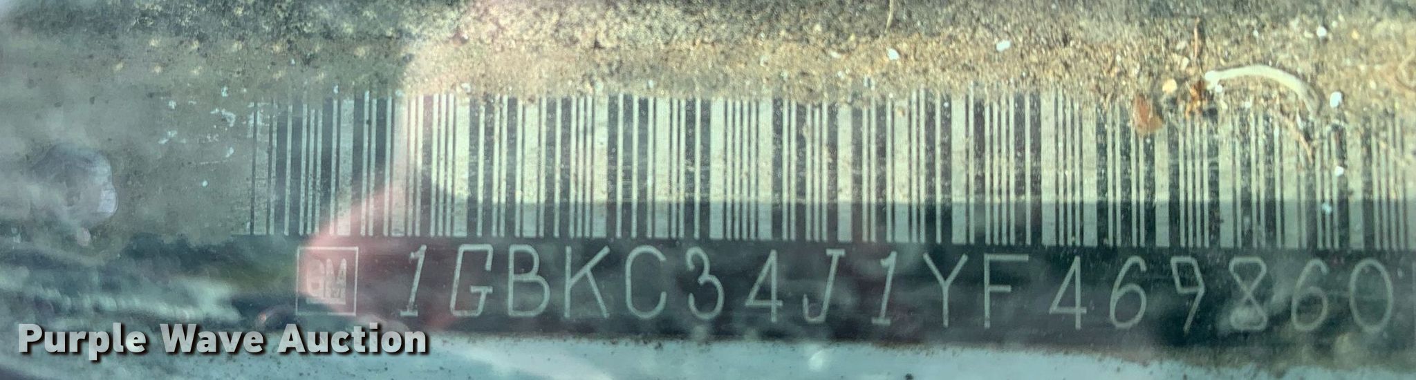 Purple Wave is selling a used 3/4 or 1 Ton Pickup or Van in Texas. This item is a 2000 Chevrolet C3500HD flatbed pickup truck with the following: Miles: 97,842 on odometer, Miles or hours may vary, unit still in use, VIN: 1GBKC34J1YF469860