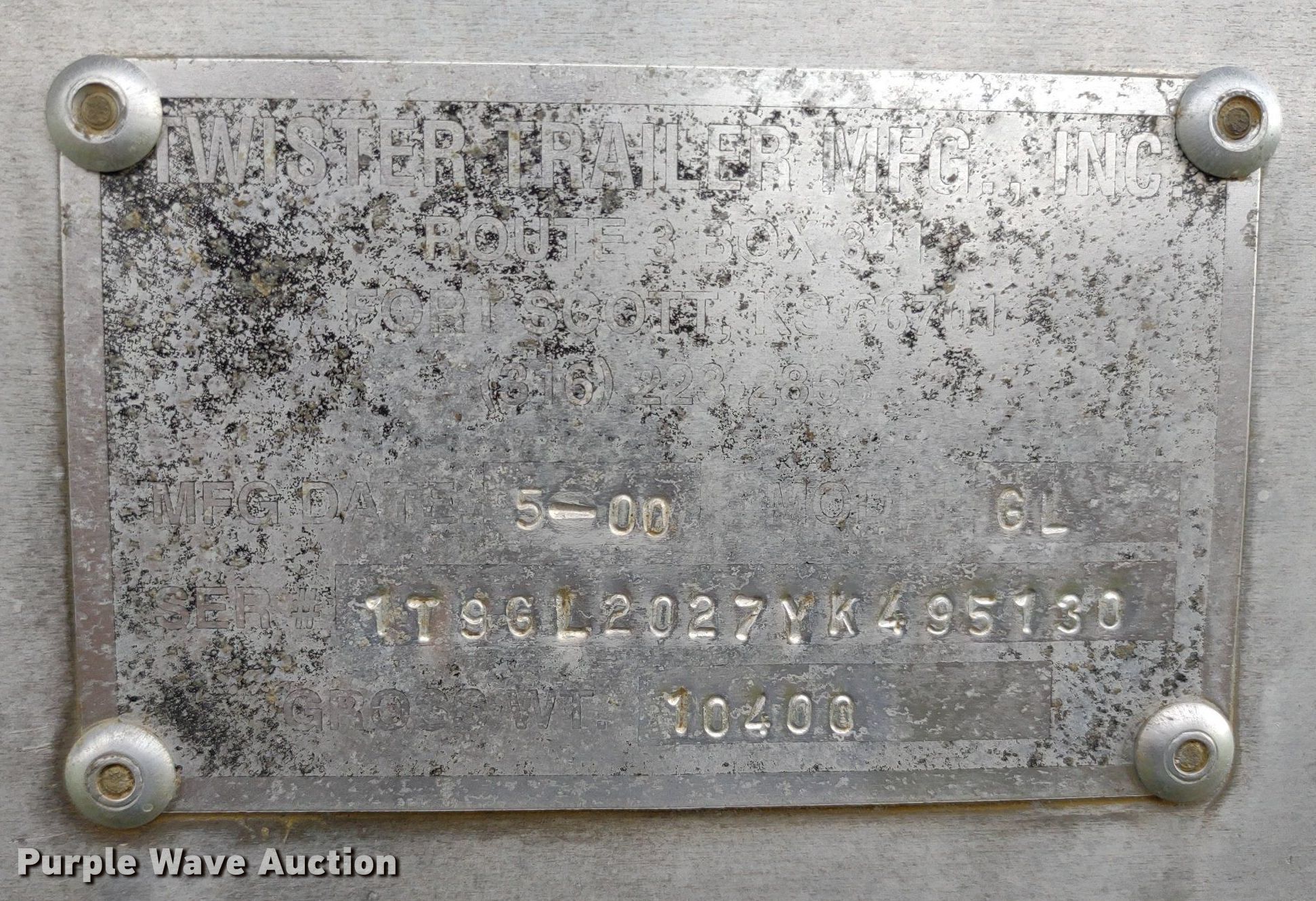 Purple Wave is selling a used Livestock Trailer in Kansas. This item is a 2000 Twister GL livestock trailer with the following: VIN: 1T9GL2027YK495130
