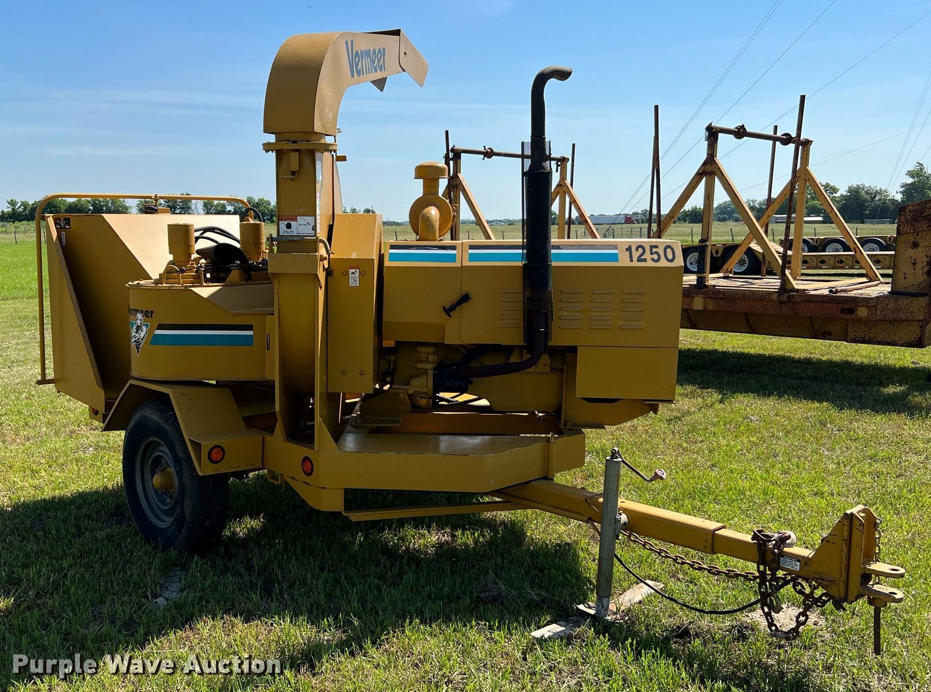 Purple Wave is selling a used Wood Chipper or Stump Grinder in Texas. This item is a 1990 Vermeer 1250 wood chipper with the following: Hours: 1,280 on meter, VIN: 1VRC14136L1001291