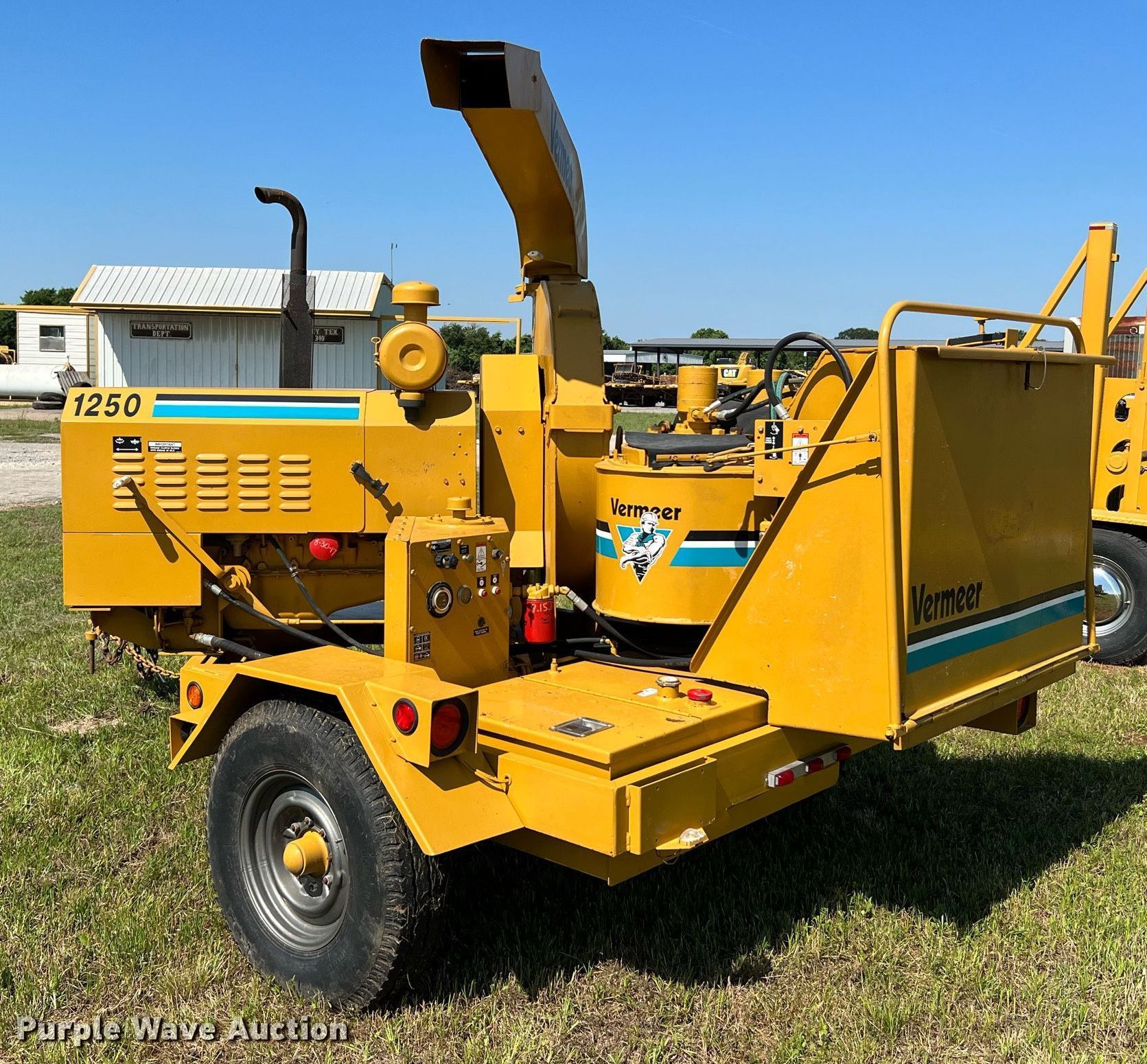 1990 Vermeer 1250 wood chipper. Hours: 1,280 on meter, VIN: 1VRC14136L1001291. Engine Cylinders: 6, Fuel type: Gas. Features Capacity: 12", Throat opening: 28" x 16". Trailer 13' L x 90" W, Hitch: Pintle , Brakes: Electric, Axles: Single, Tire size: 7.50R16. Notes Brakes not wired. This is worksite support equipment and will not come with a title. Transfer of ownership documentation will be a bill of sale. Harding Road Boring - Open inspection June 13. 10711 Texas 231 Spur. Bryan, TX 77807