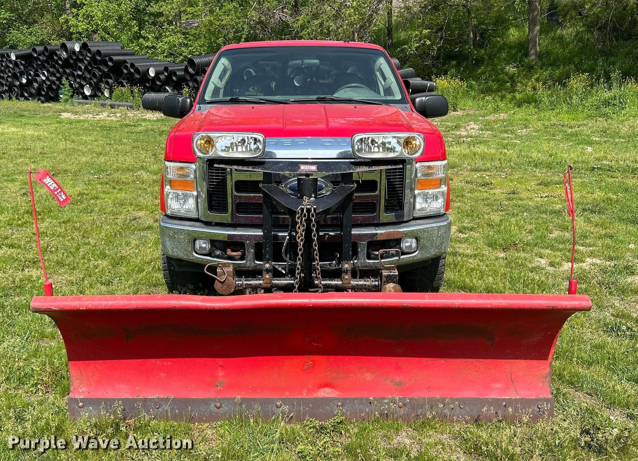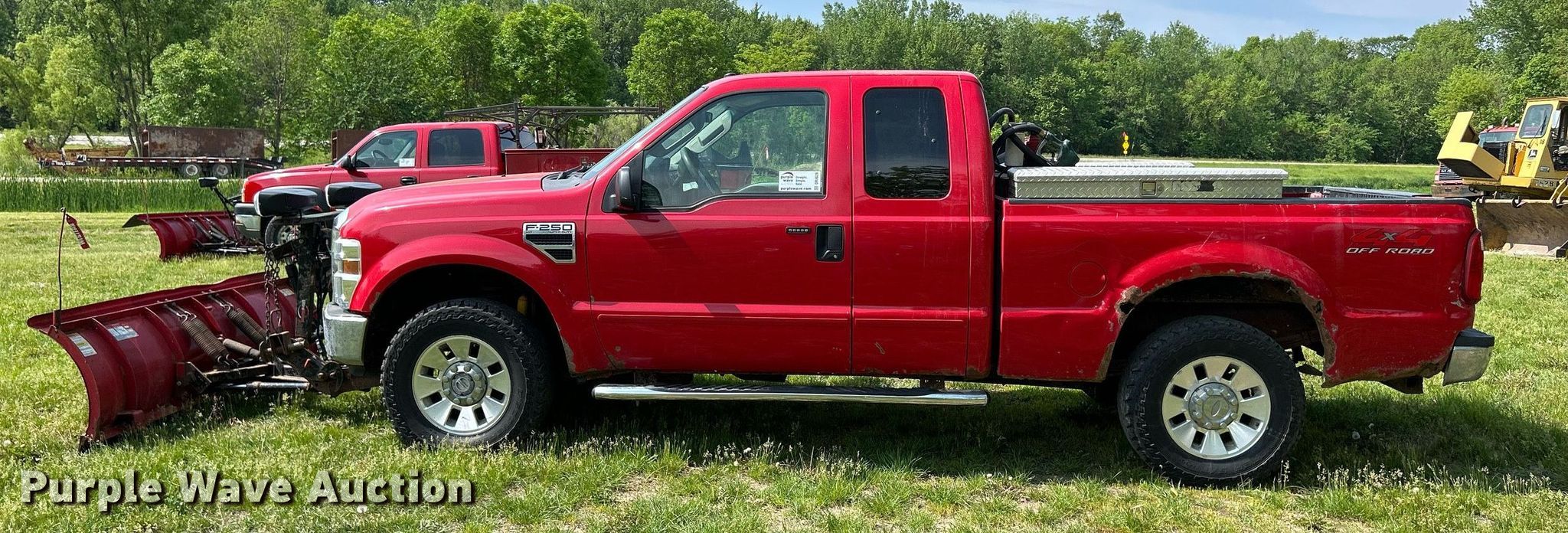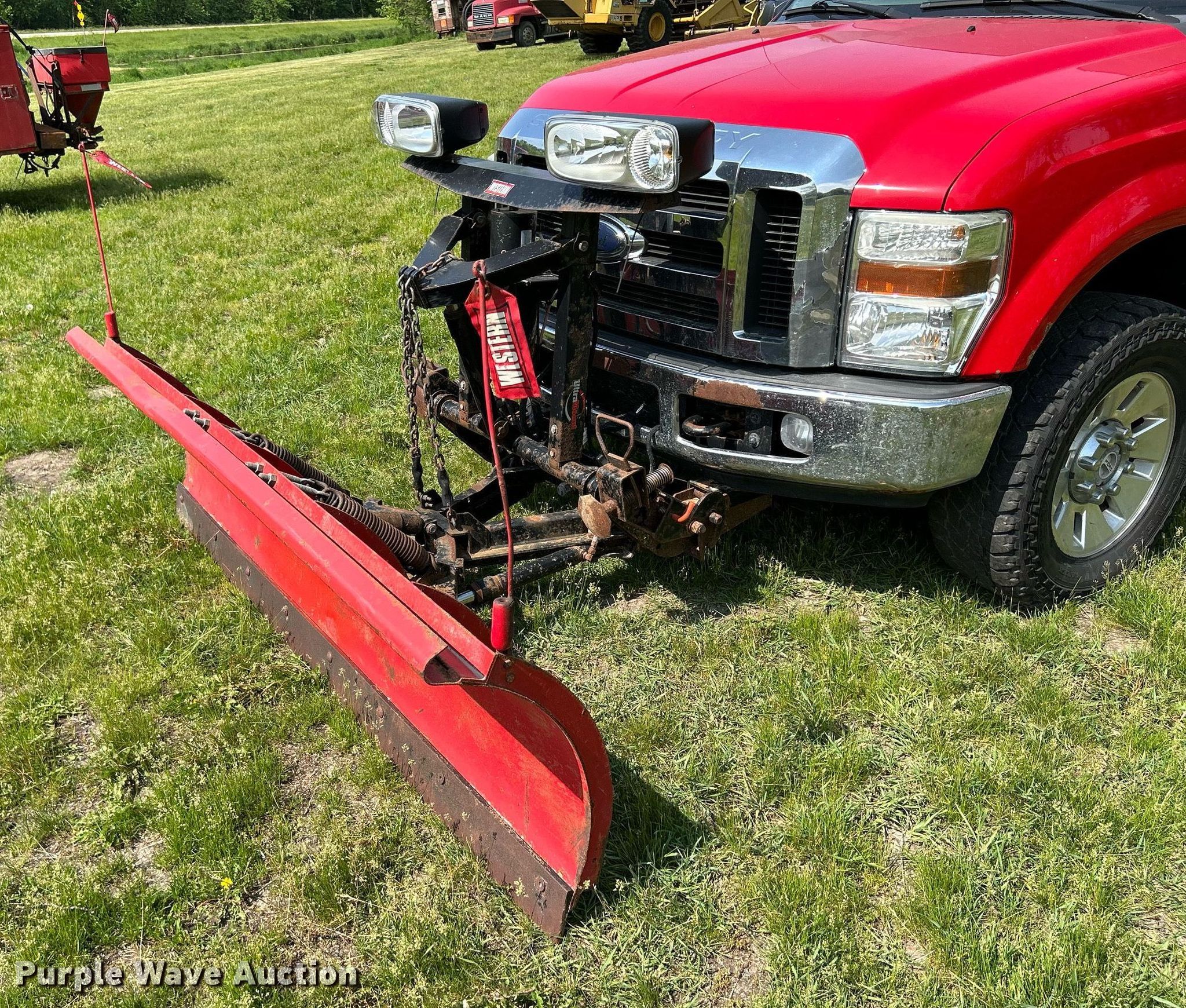 2008 Ford F250 Super Duty XLT SuperCab pickup truck. Miles: 195,353 on odometer, VIN: 1FTSX21528EA66610. Engine Displacement: 5.4L V8 SOHC, Cylinders: 8, Fuel type: Gas. Transmission Automatic, Four wheel drive. Interior AC, Heat, Power windows, Power locks, Cruise control. Features Western snow plow Width: 90", Auxiliary fuel tank. Tires Size: LT275/70R18. Notes Windshield chipped or cracked, Non-operational passenger rear door. Iowa title. Title distribution may be delayed up to 14 days from verification of funds. 2190 250th Street. Washington, IA 52353
