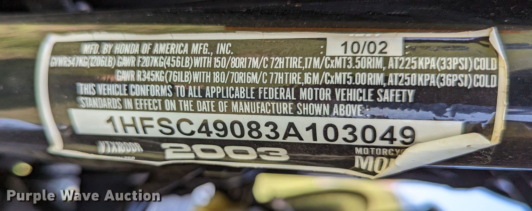 Purple Wave is selling a used Motorcycle in Oklahoma. This item is a 2003 Honda VTX1800R motorcycle with the following: Miles: 22,152 on odometer, VIN: 1HFSC49083A103049