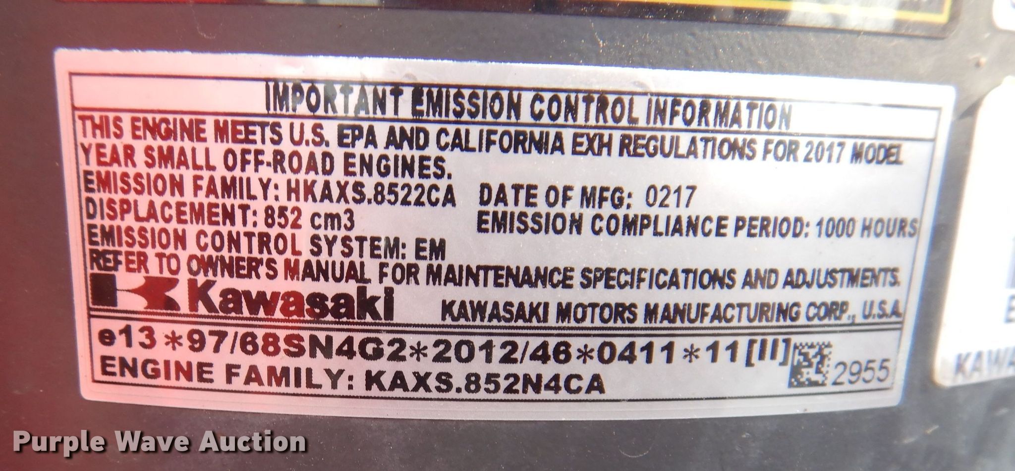 2017 Country Clipper Charger ZTR lawn mower. Hours: 367 on meter, Cutting width: 60". Engine Kawasaki , Serial: FX801VB20548, Displacement: 852 cc, Cylinders: 2, Fuel type: Gas. Transmission Hydrostatic. Operators station OROPS. Tires Front: 13x6.5-6NHS, Rear: 24x12-12NHS. Cannon Sales & Service. 1004 W. South St. Mount Ayr, IA 50854