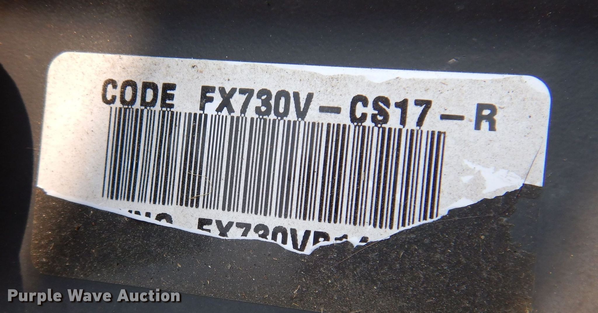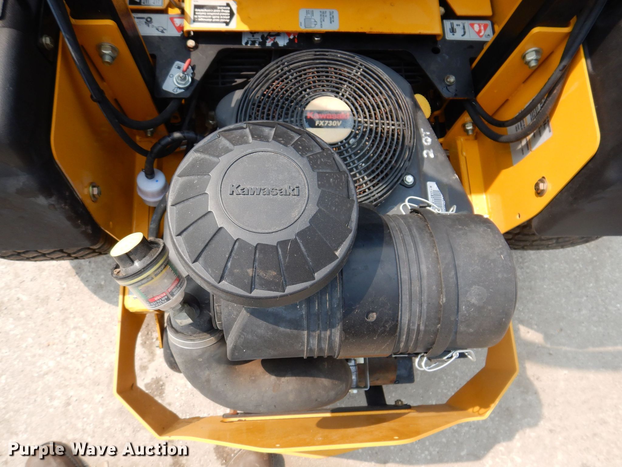 2015 Hustler X-One ZTR lawn mower. Hours: 709 on meter, Cutting width: 60", Serial: 15034691. Engine Kawasaki FX730V, Displacement: 726 cc, Cylinders: 2, Fuel type: Gas. Transmission Hydrostatic. Operators station OROPS. Features Rear discharge. Tires Front: 13x6.5-6NHS, Rear: 24X12-12NHS. Cannon Sales & Service. 1004 W. South St. Mount Ayr, IA 50854